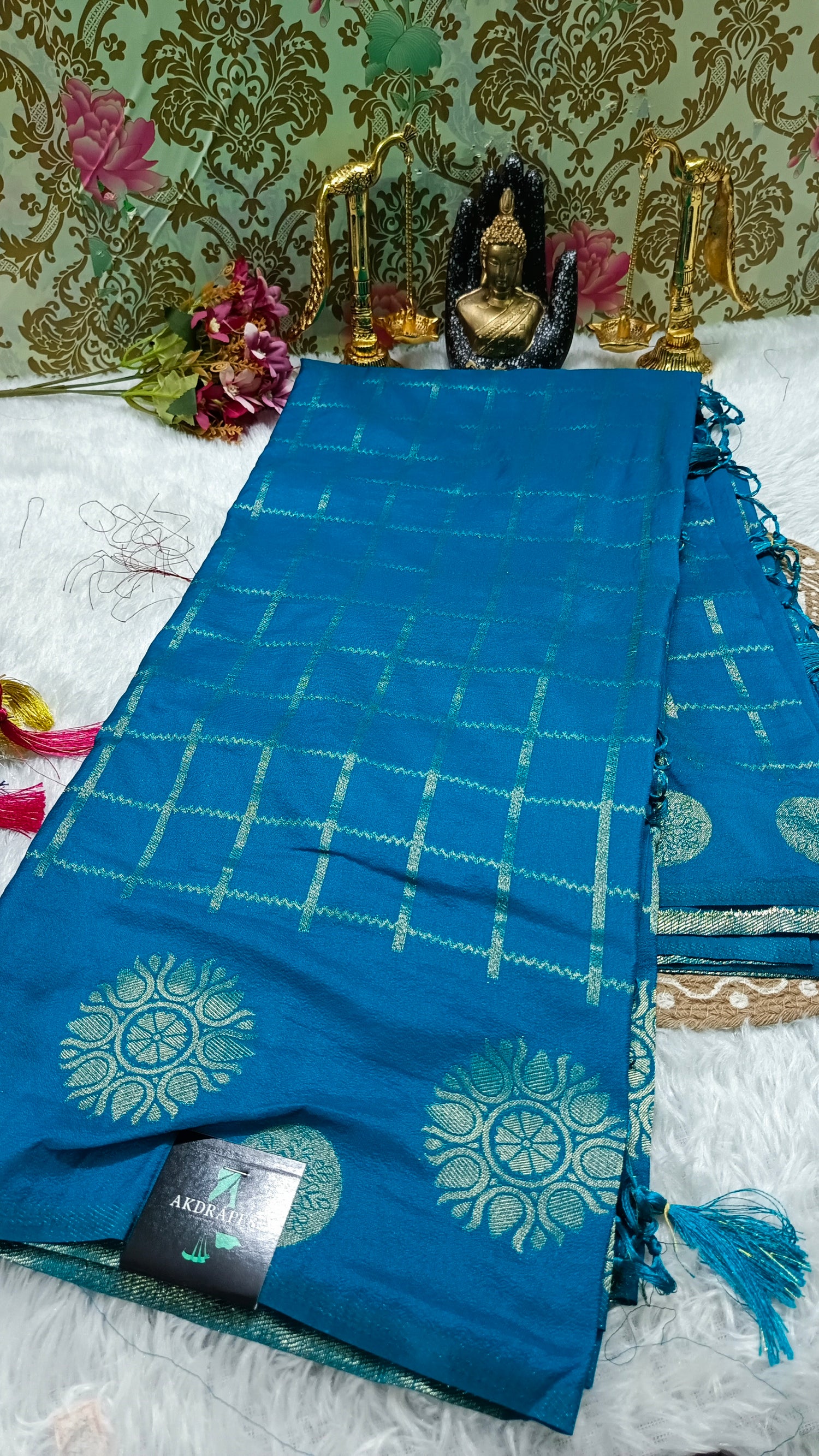 Iceblue Navy blue Pavazha Pattu vegan Kanchi silk saree MA25135