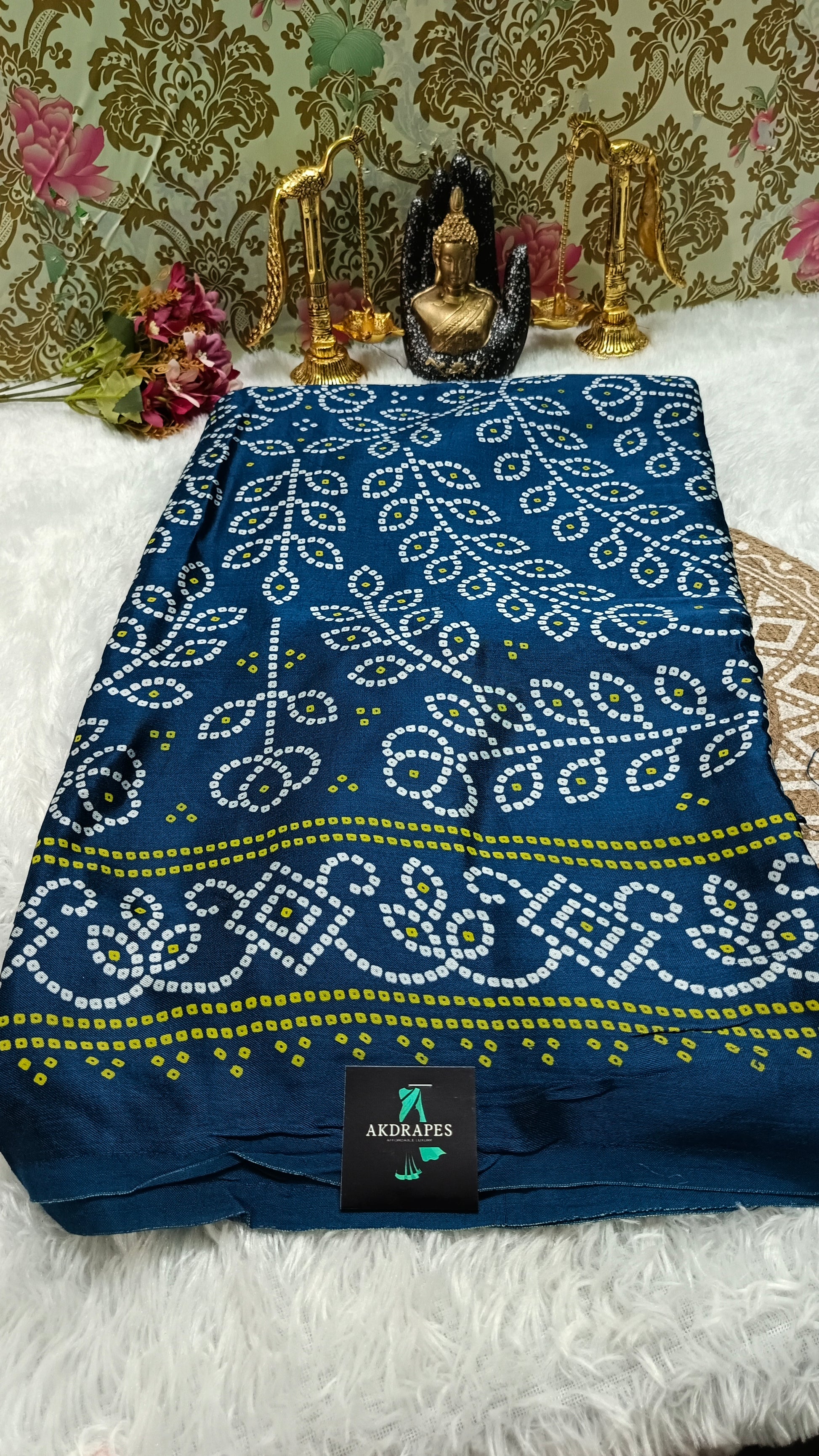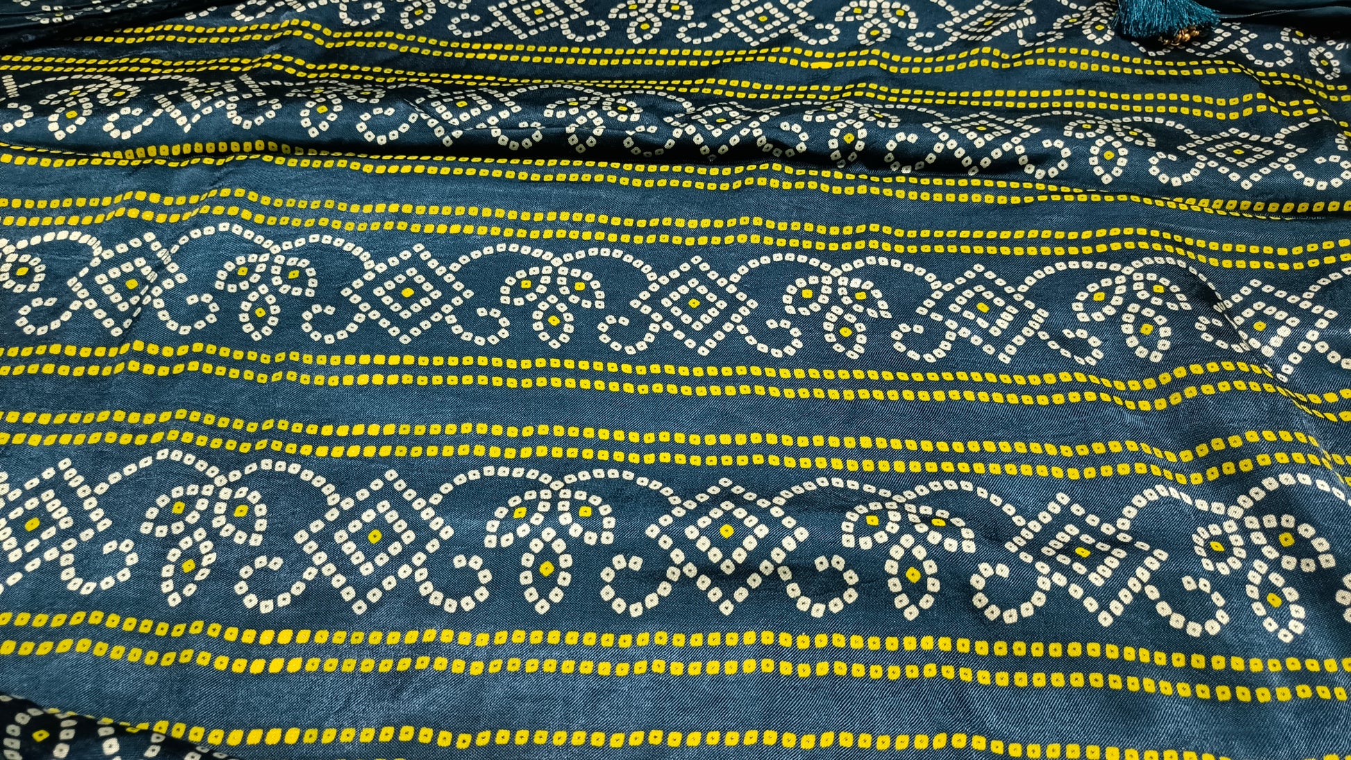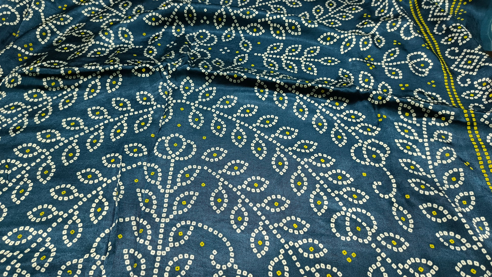 - Style: This saree marries two timeless Indian art forms—bandhani tie-dye and ajrakh block printing—resulting in a contemporary yet classic style that celebrates rich cultural heritage.