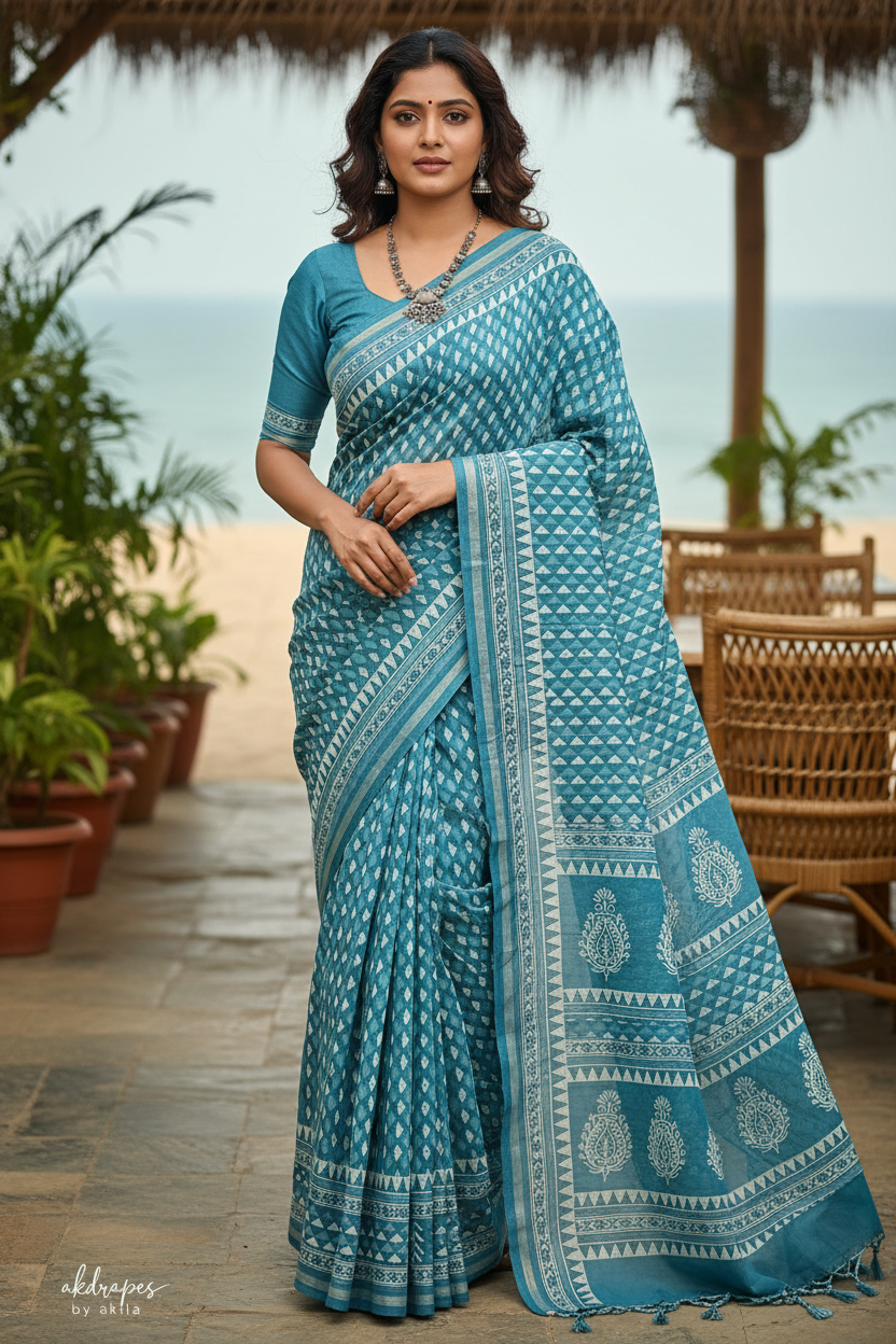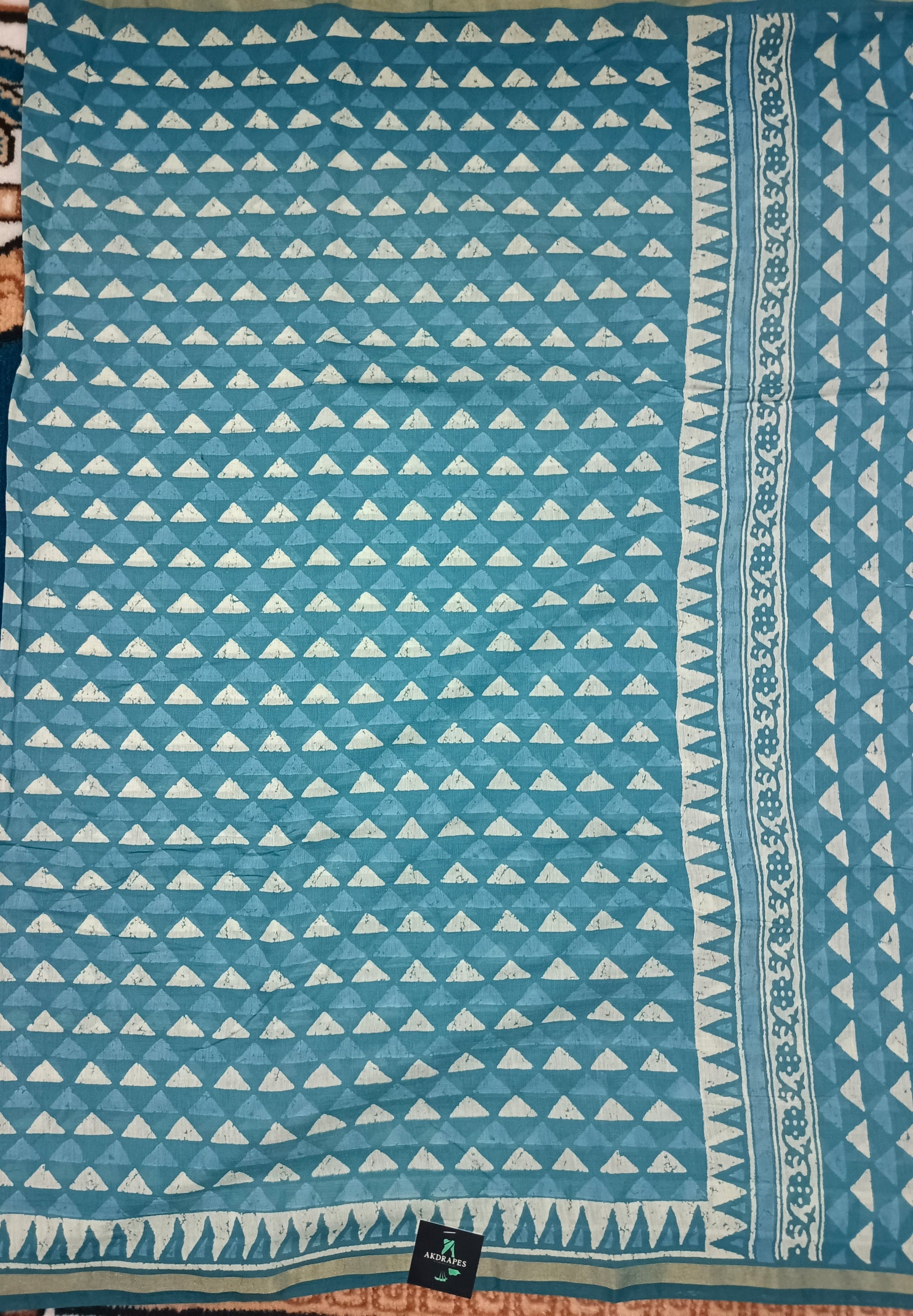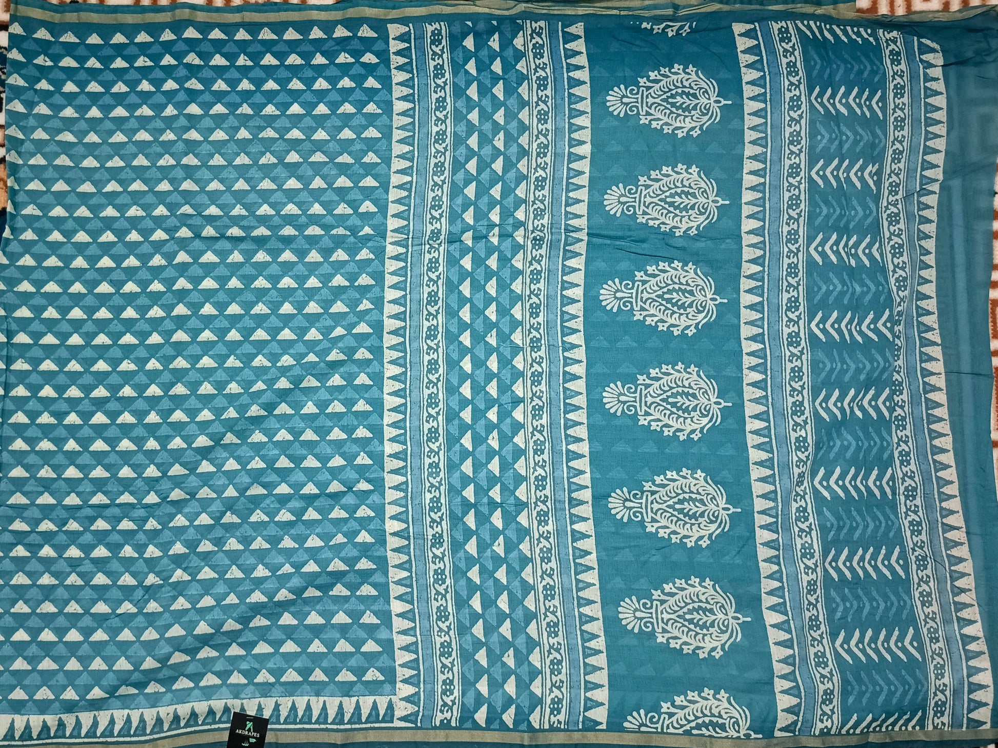 Blue Rapid discharge Vegan chanderi cotton saree HA25454
