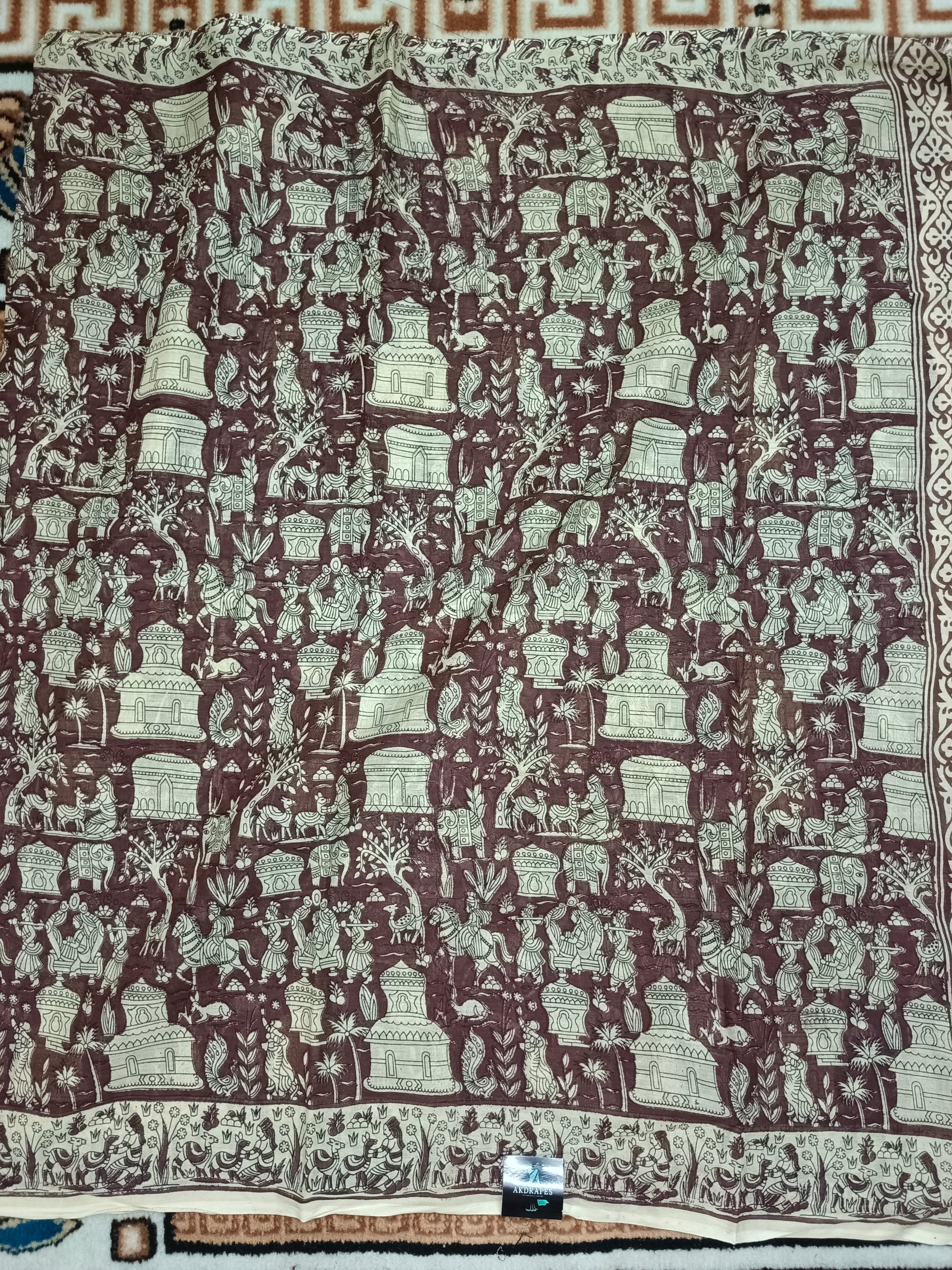 Brown Ganga Mull Cotton kalamkari saree SA25857