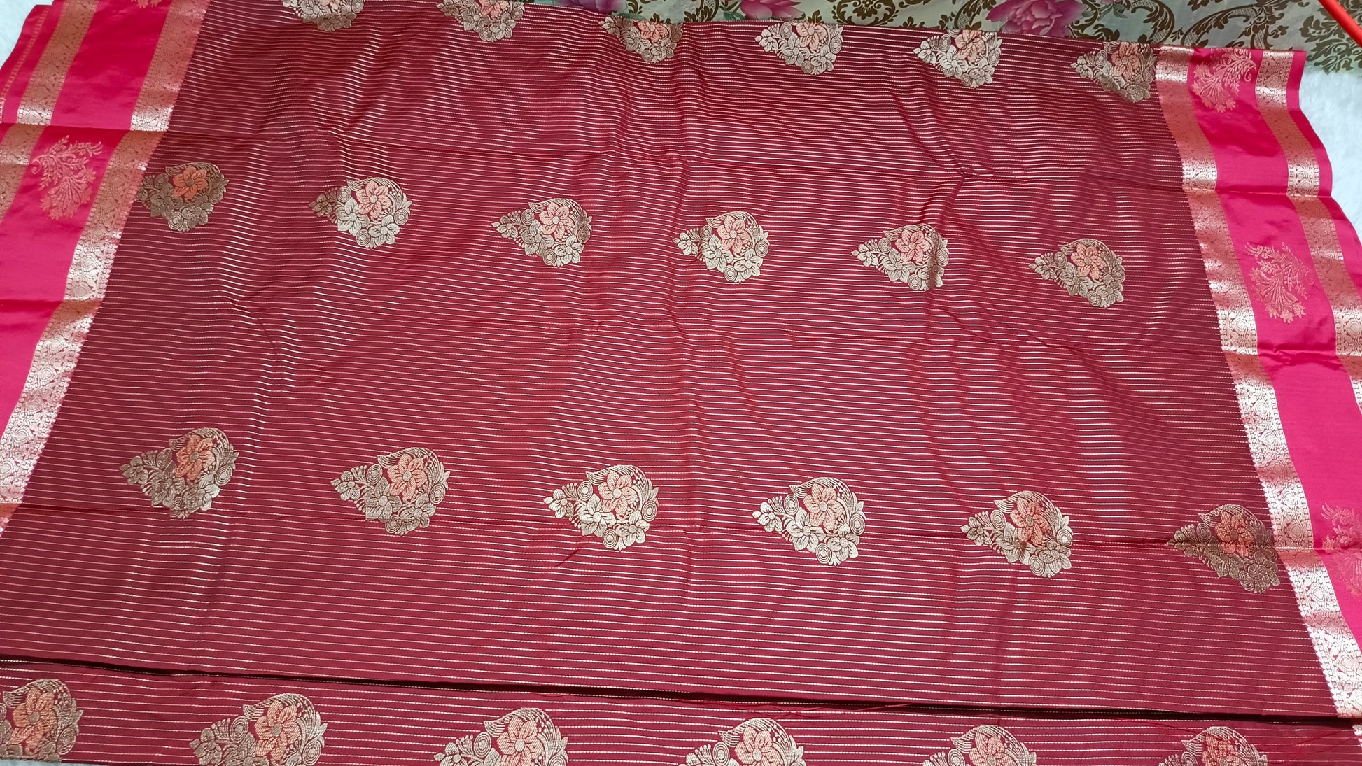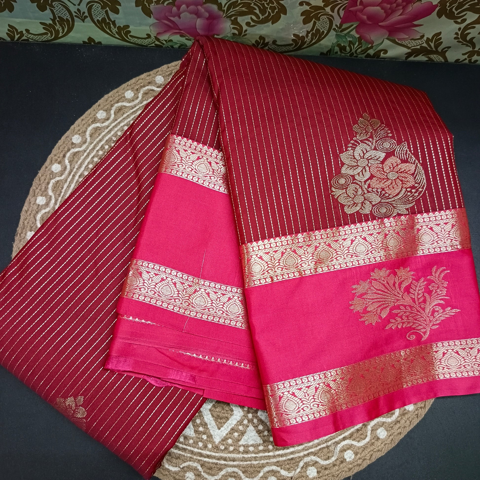 | Blouse | Contrast red Blouse (a solid color in a soft pastel shade that perfectly complements the pallu) |