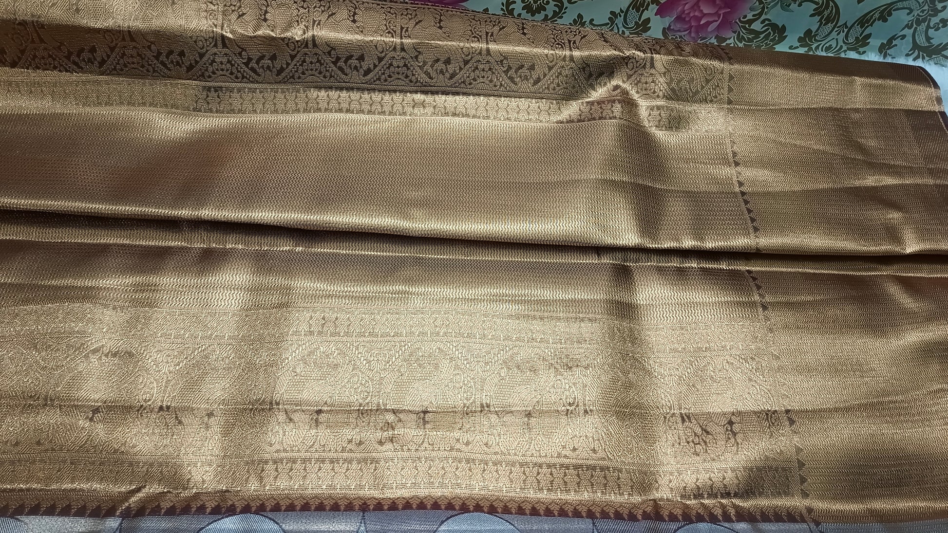 copper Radiance Heritage vegan self tissue kanchi silk saree LA25937