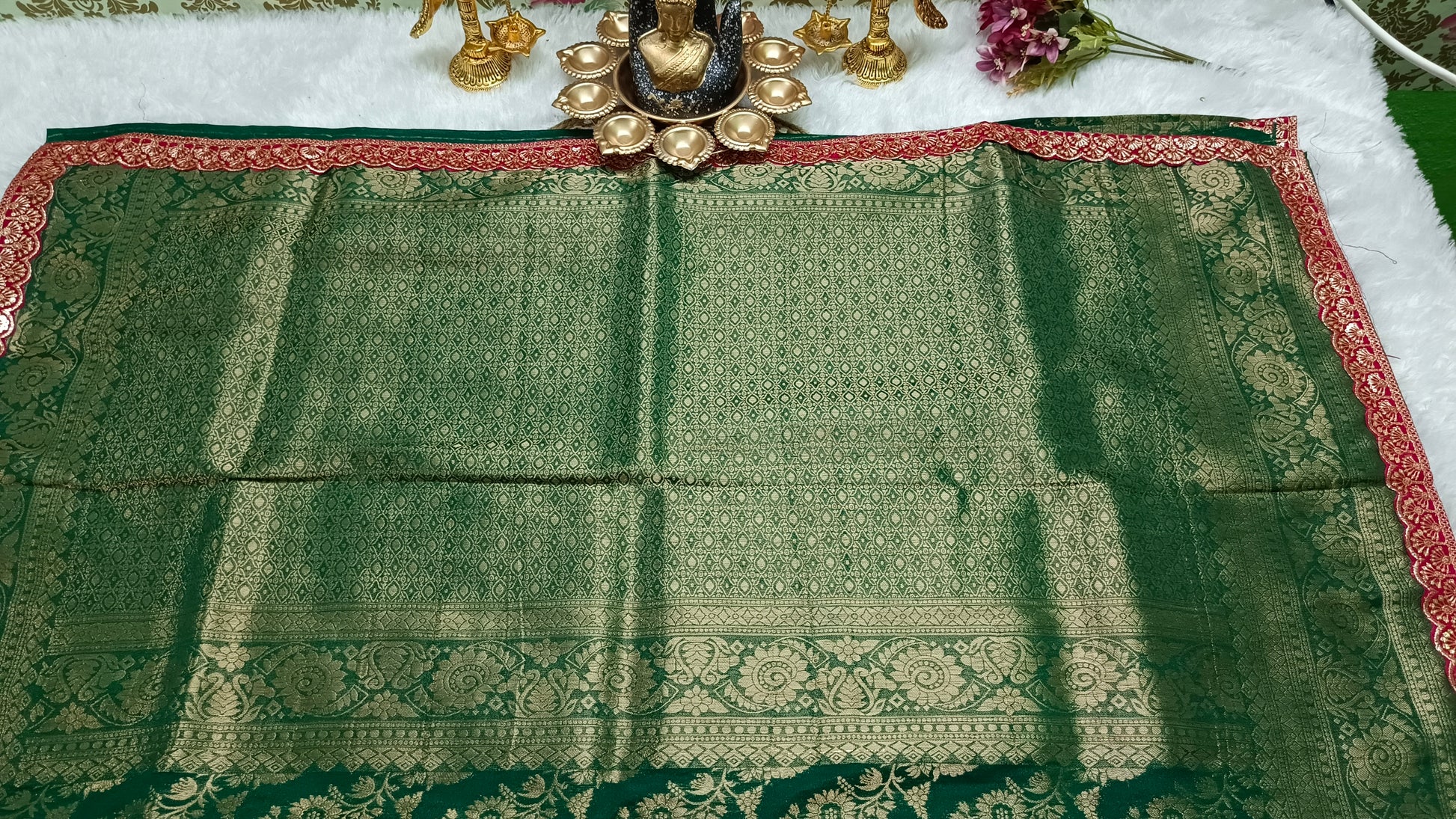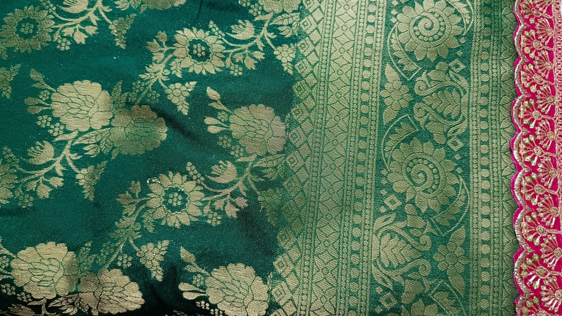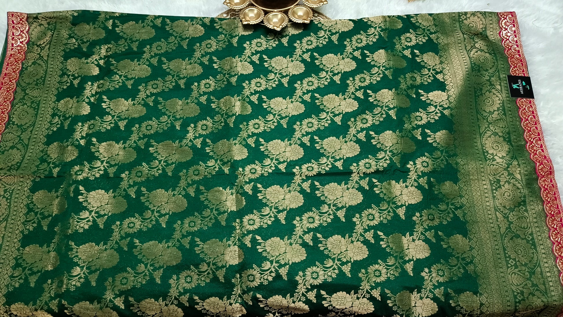 Dark green with pink Royal banarasi vegan kaddi georgette saree JA25328