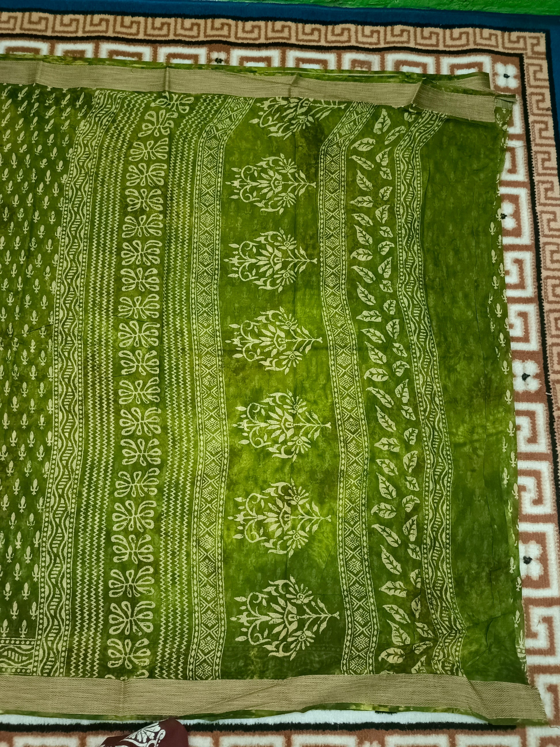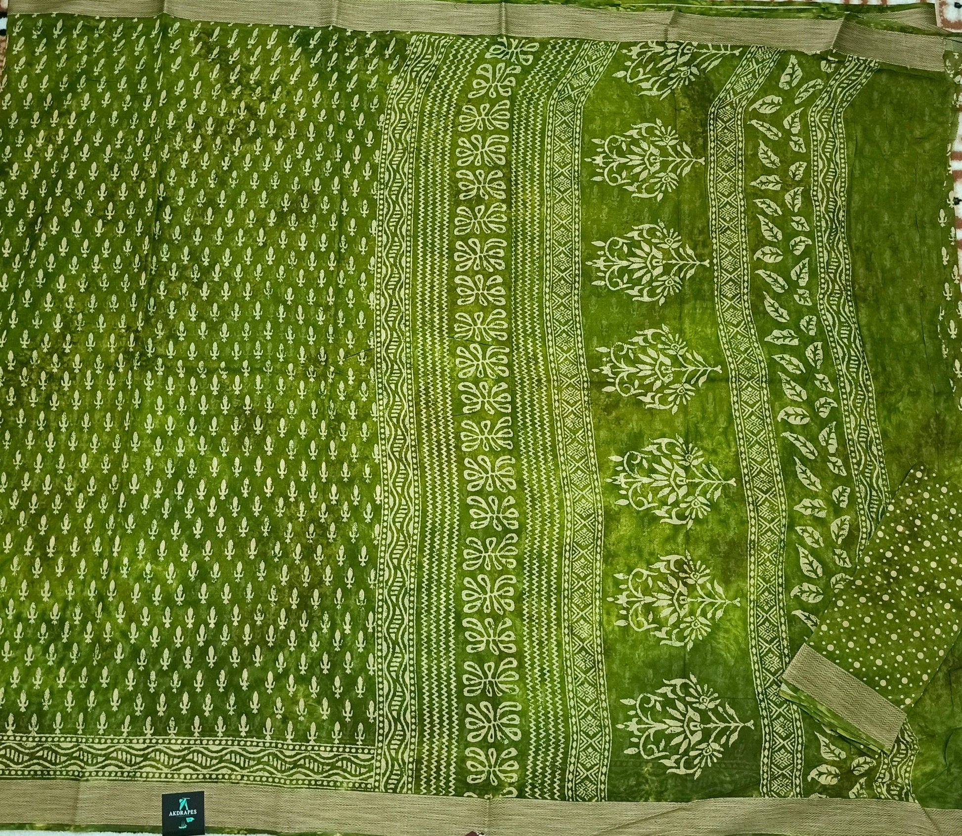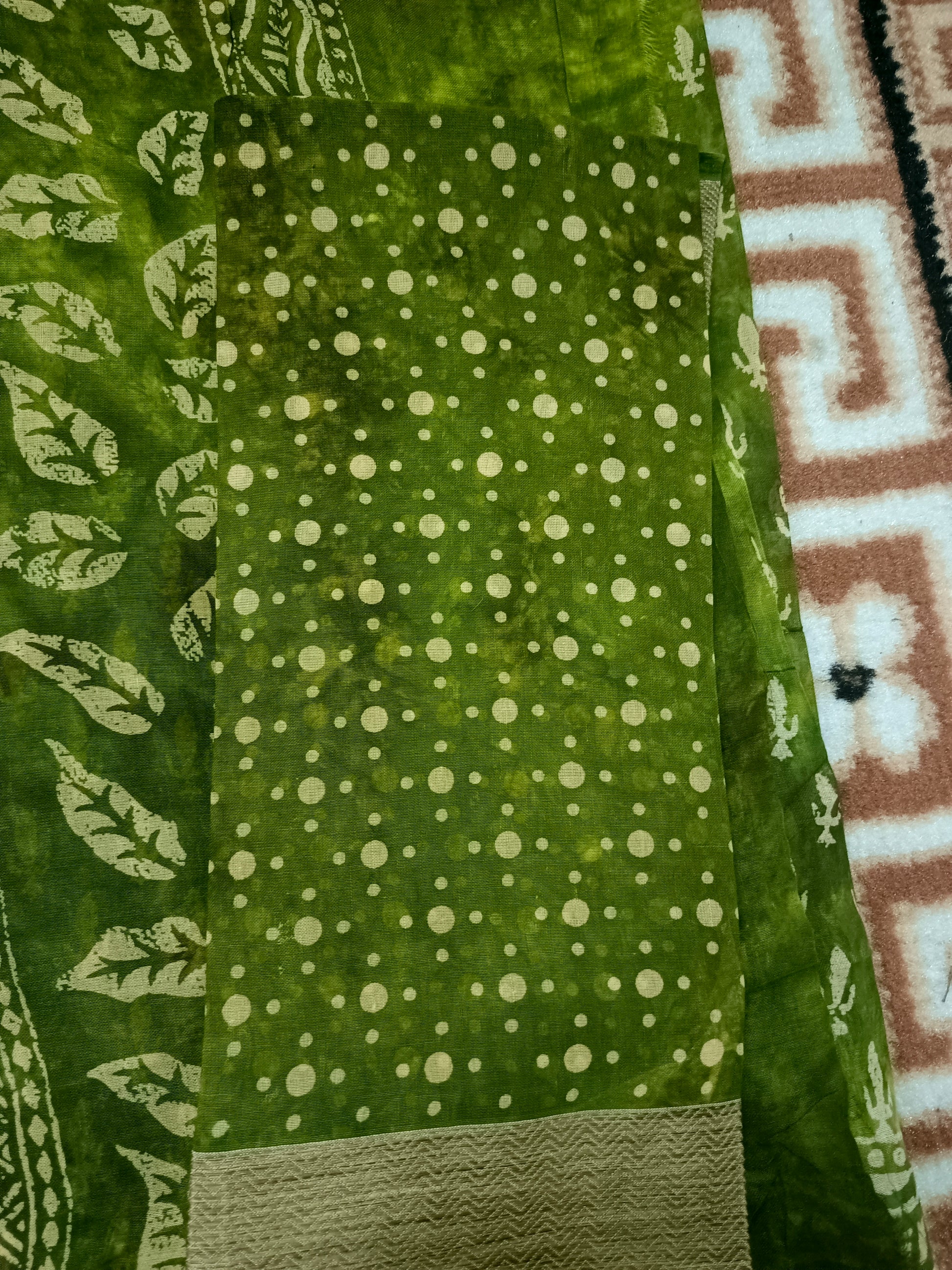 Fern Green Pina cola vol 1 Rapid discharge Vegan mull cotton saree HA25487