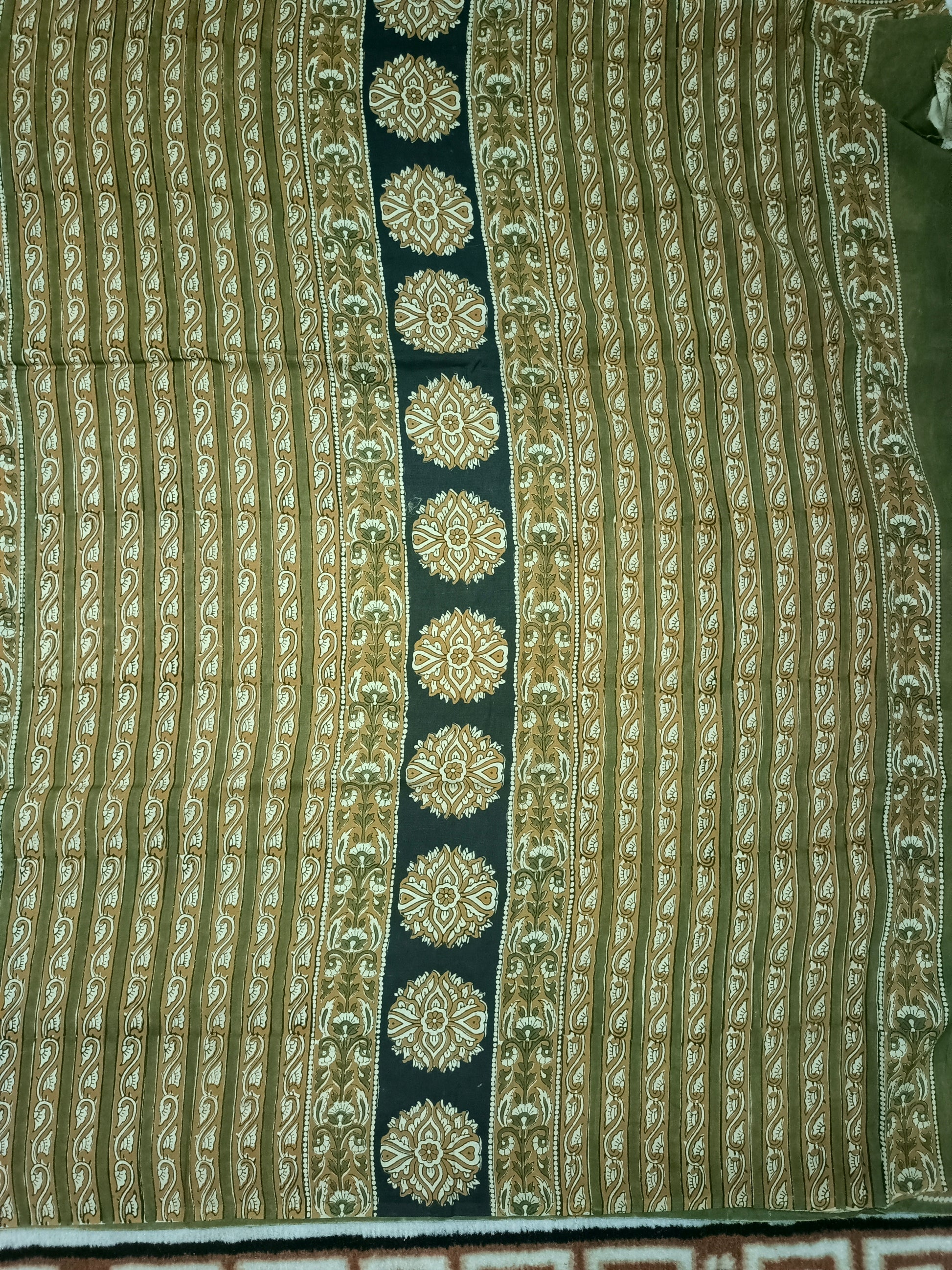 Green Mustard Vegan assam silk cotton bagru printed saree HA25535