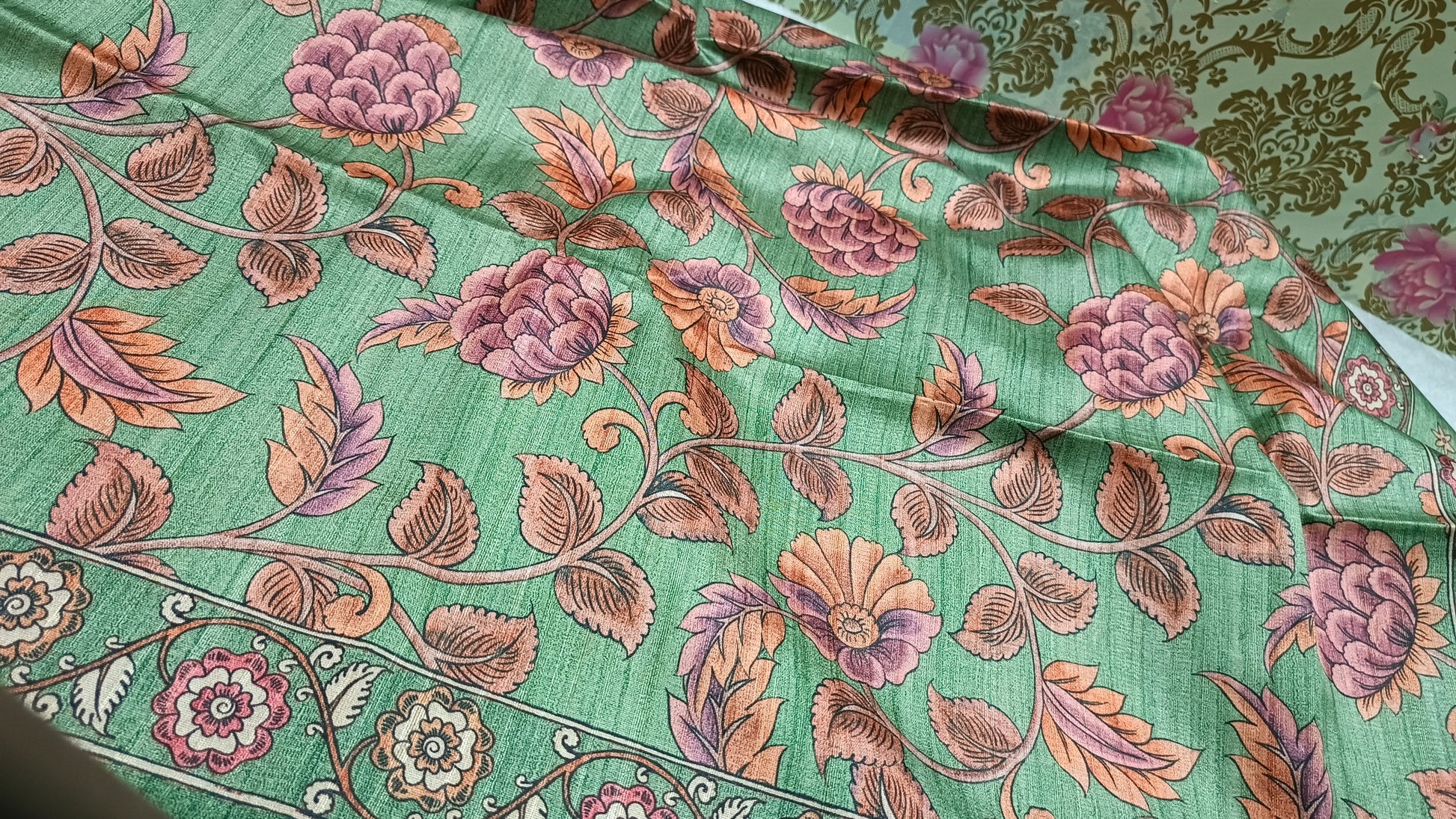 Green Ritika digital printed kalamkari vegan tussar saree SA25699