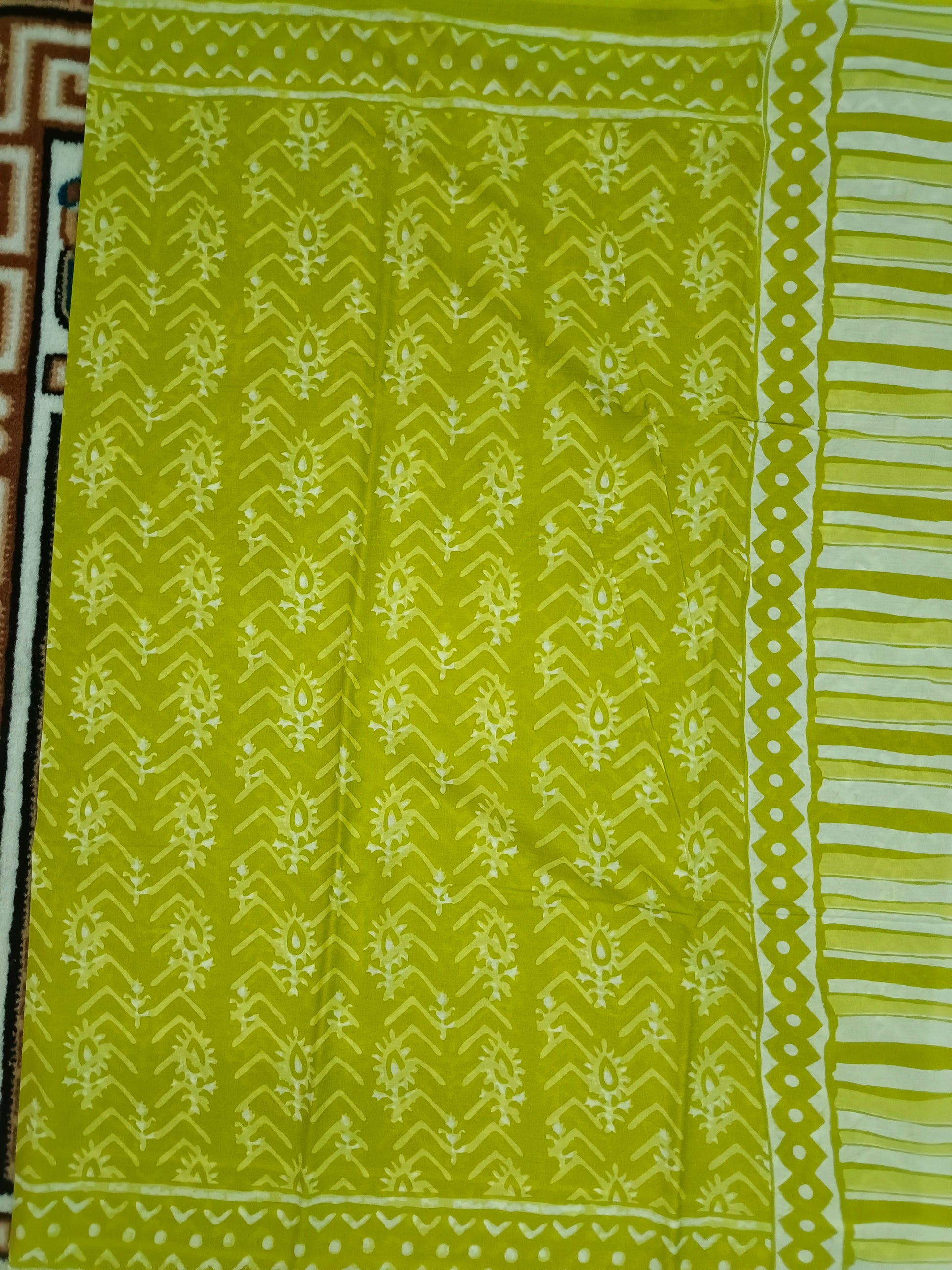 Crafted from soft vegan cotton fabric, this saree is lightweight, airy, and ideal for all-day wear. The Jaipur-inspired prints bring a touch of traditional artistry, while the matching printed blouse completes the look with a cohesive, stylish finish.