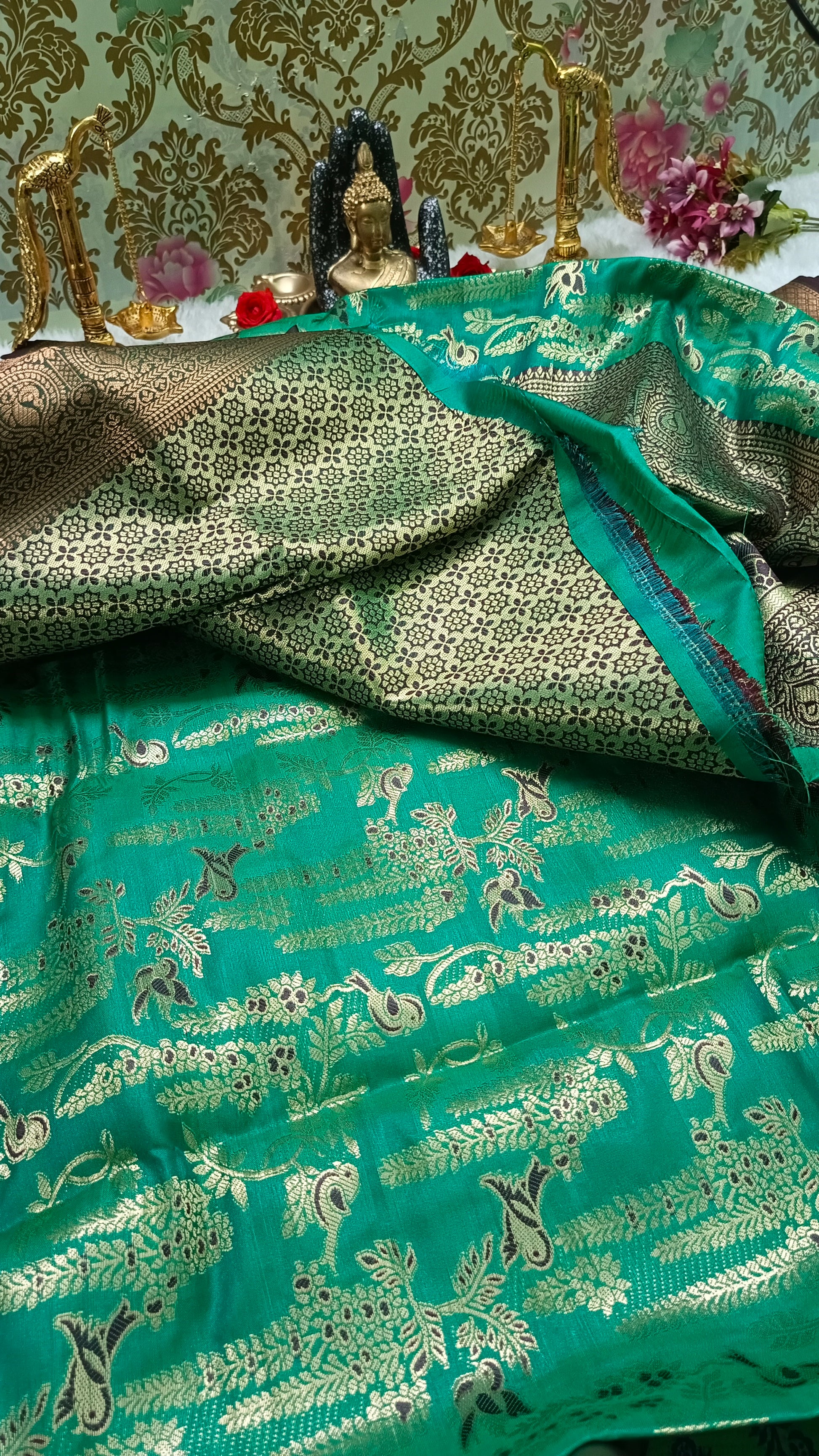 Green with Brown Raj nandhini Vegan kanchi silk Saree JA25283