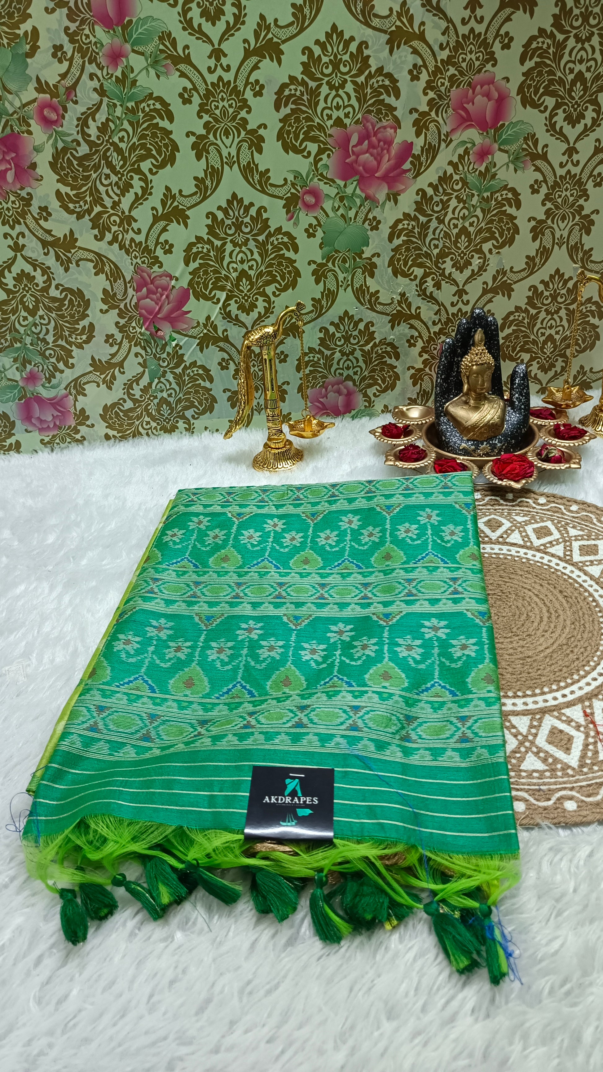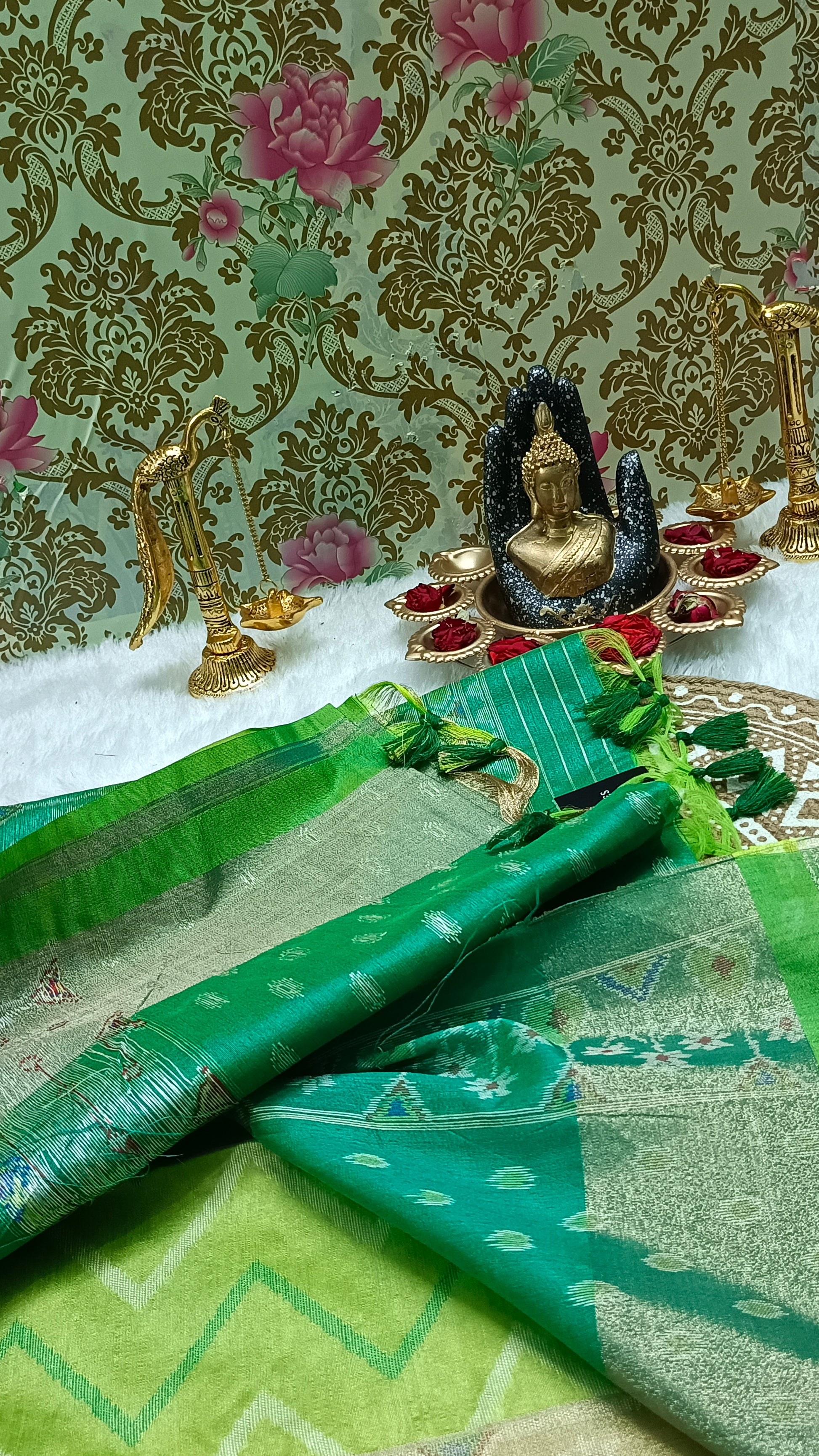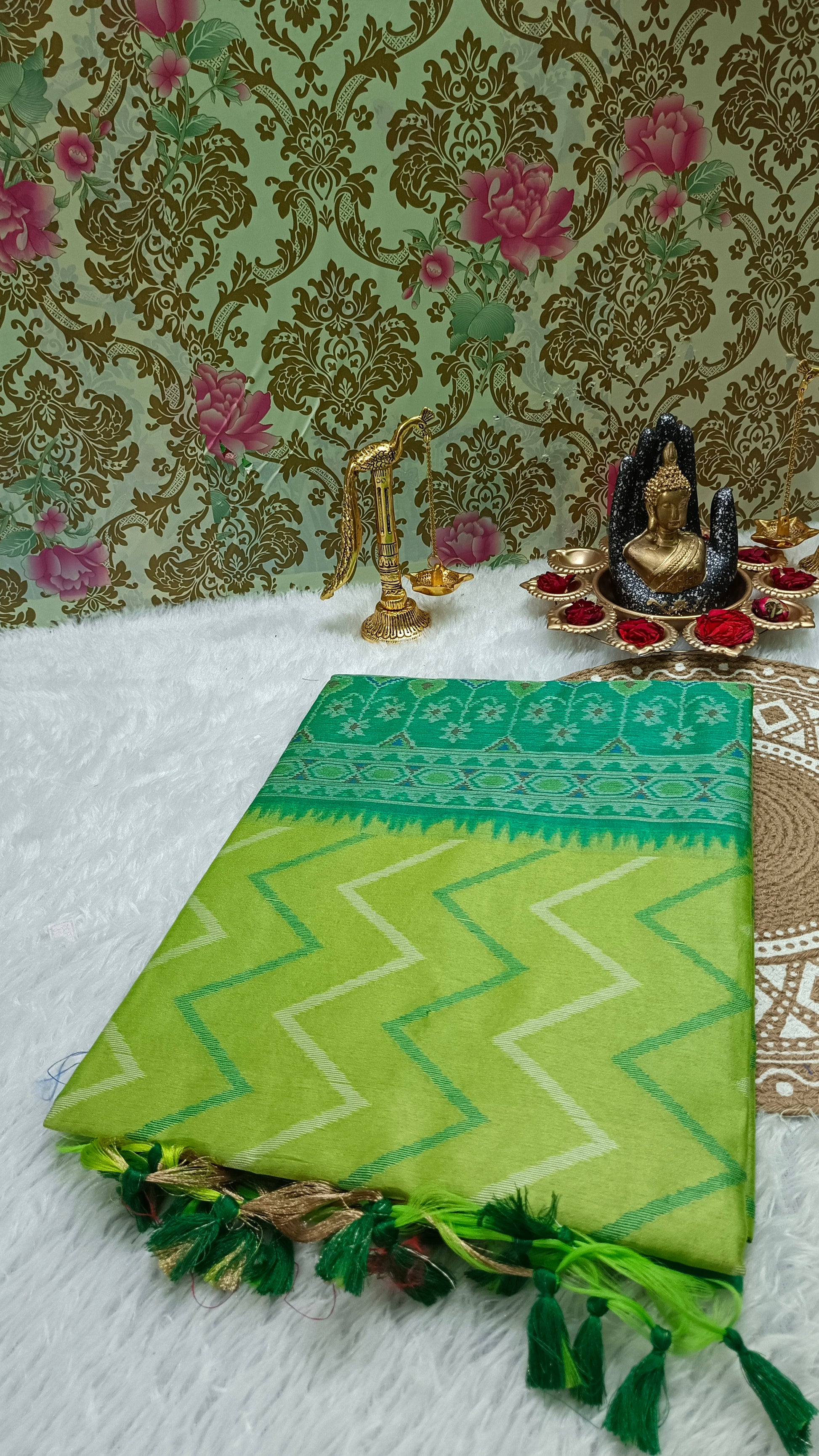 Green Zigzag Handweave Ikkat Vegan Silk cotton saree HA25429