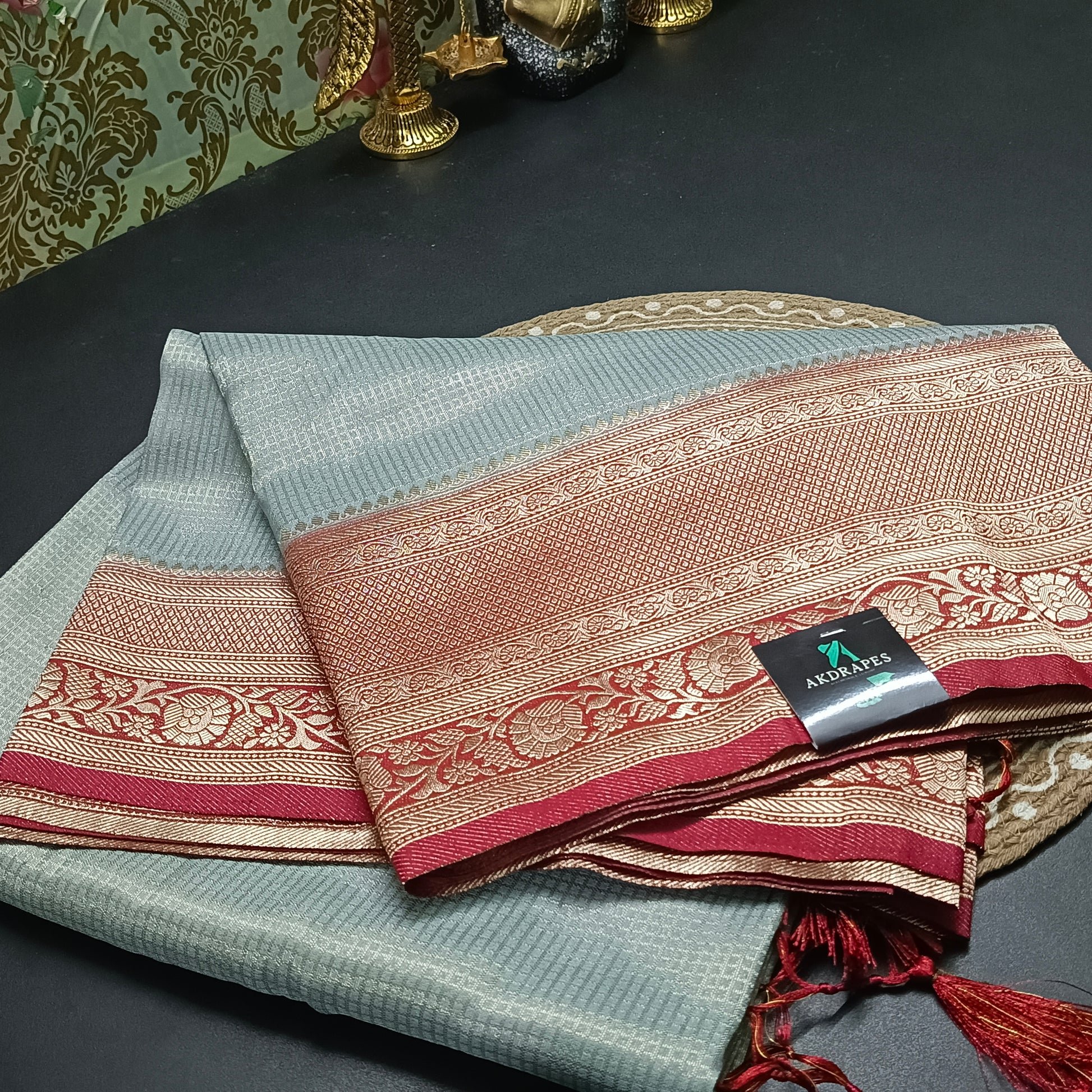 Grey Zari tara vegan banarasi kaddi georgette saree MA25256