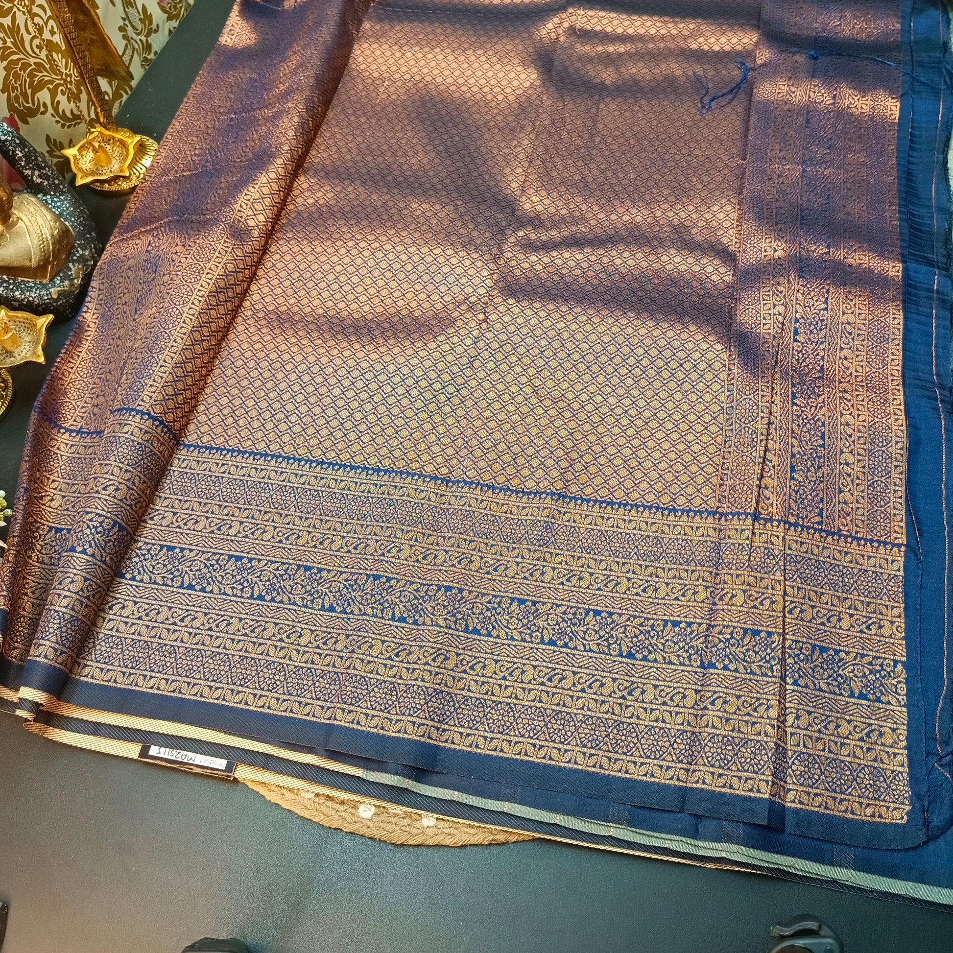 Light grey Navy blue Maragatha Muhurtham Vegan Kanchi Silk Saree MA25115