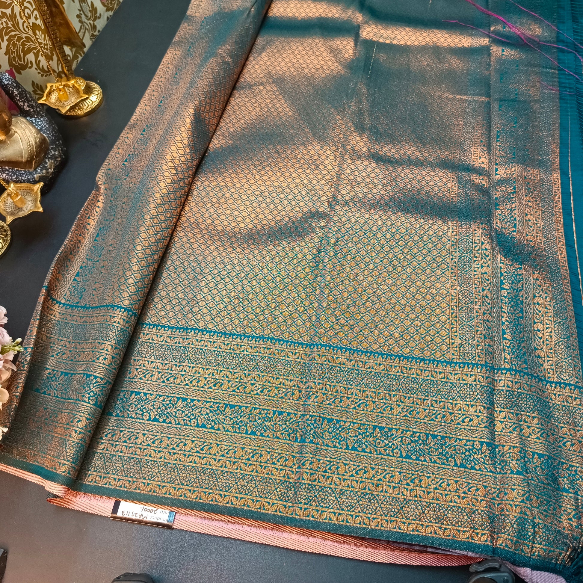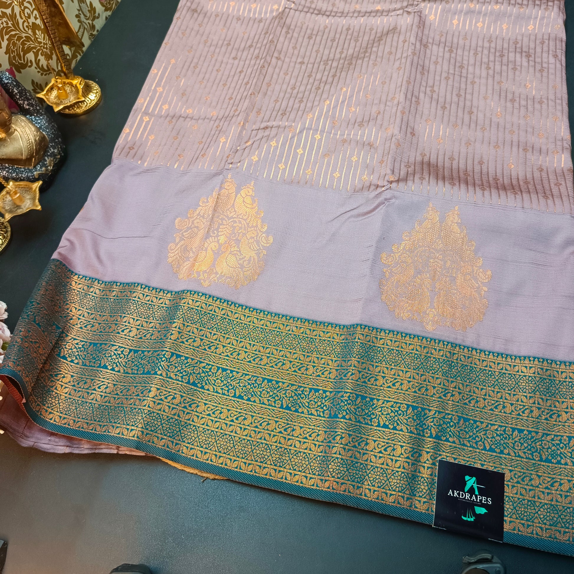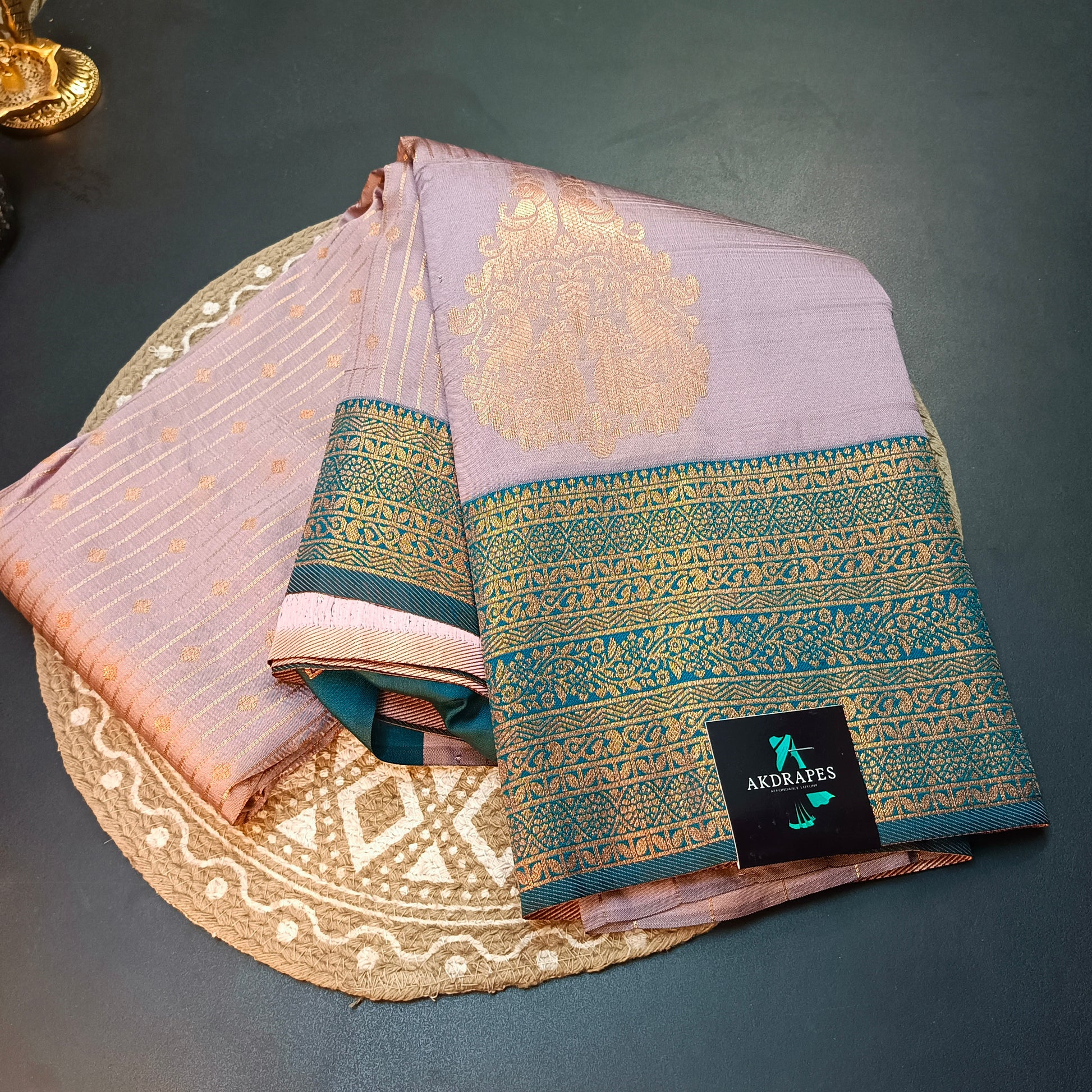Lilac blue Maragatha Muhurtham Vegan Kanchi Silk Saree MA25113