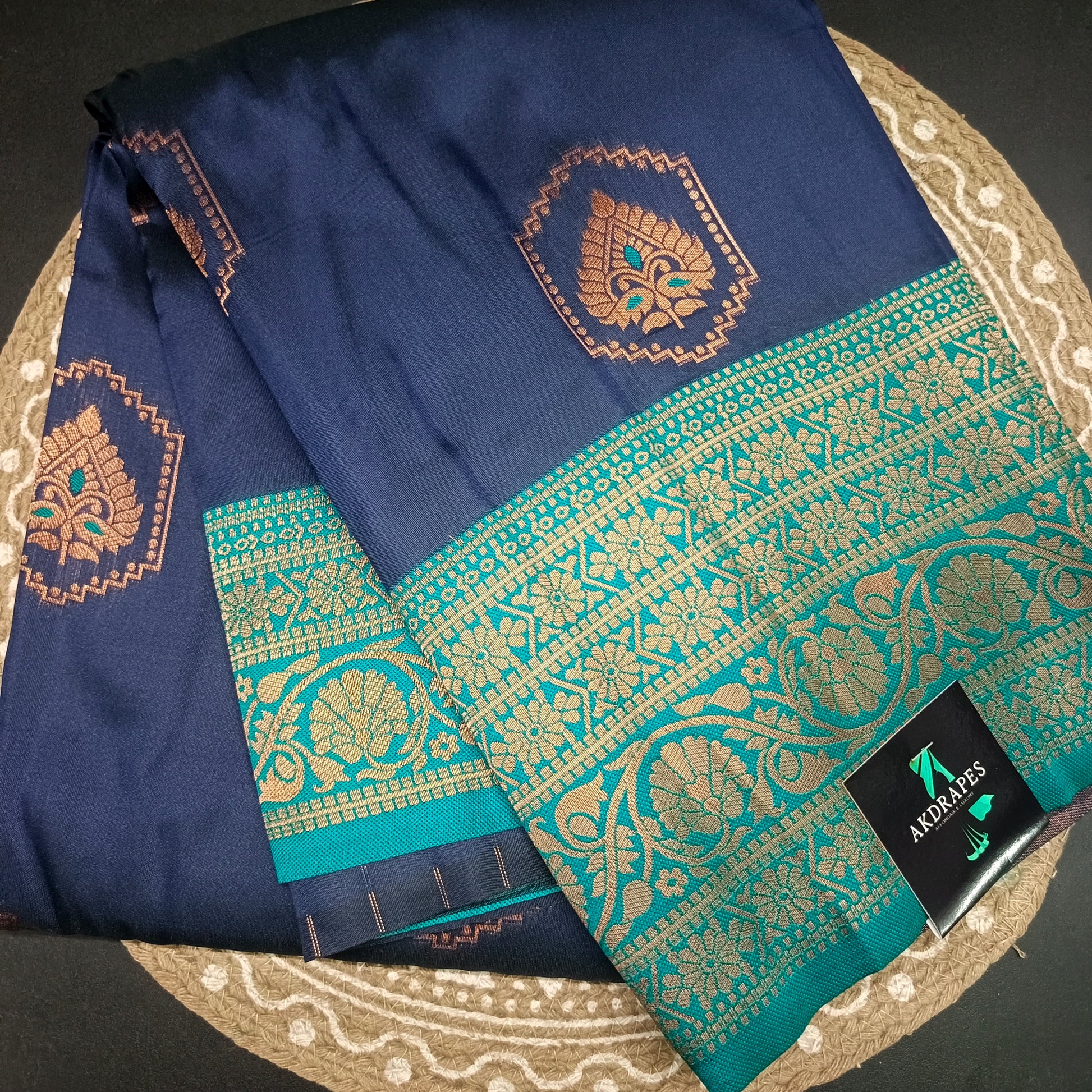 Navy blue Green Anantha vastra Vegan Kanchi soft silk saree MA25126