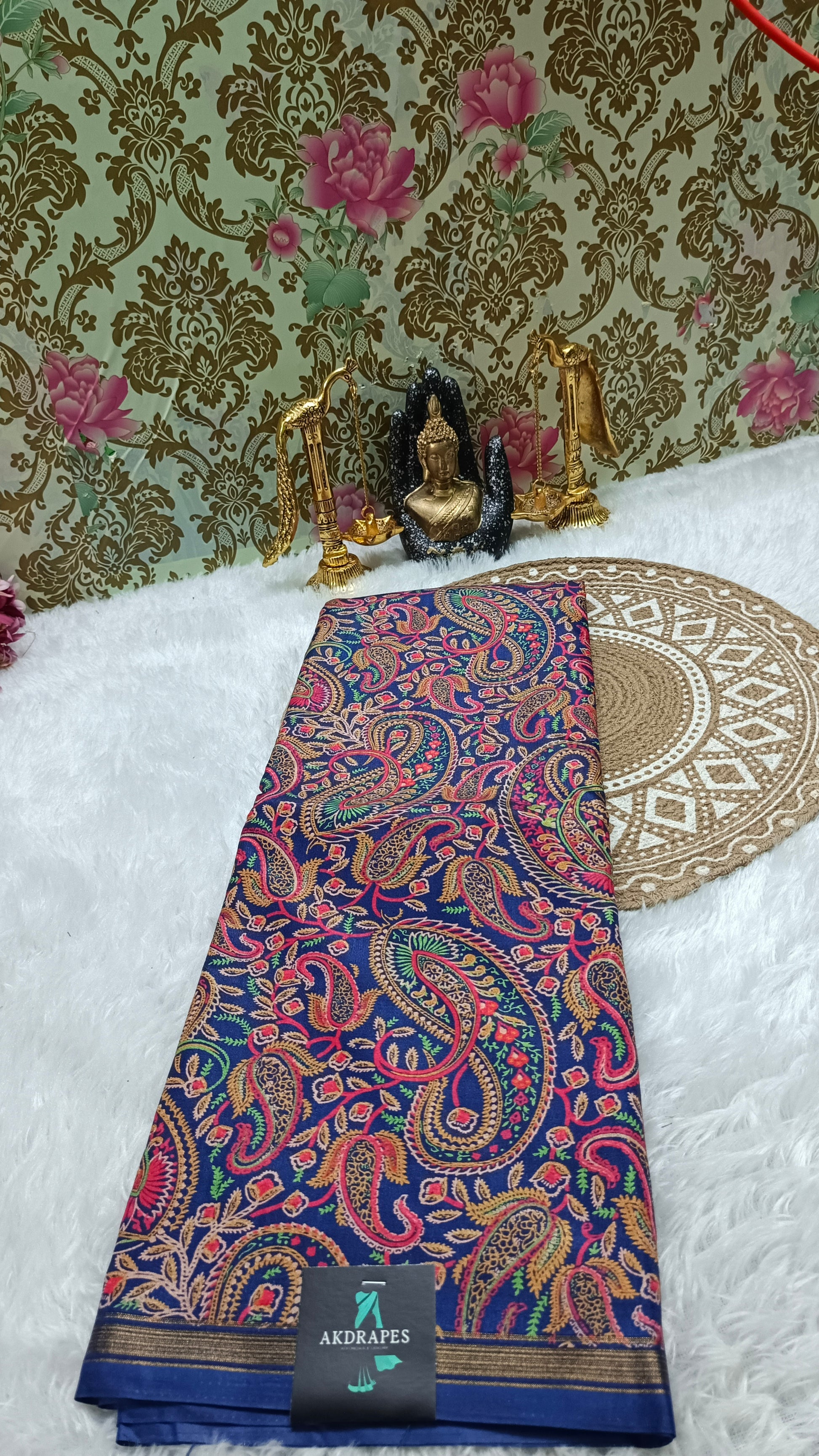 Navy blue Gulmarg Paisley Vegan Crepe silk saree SA25603