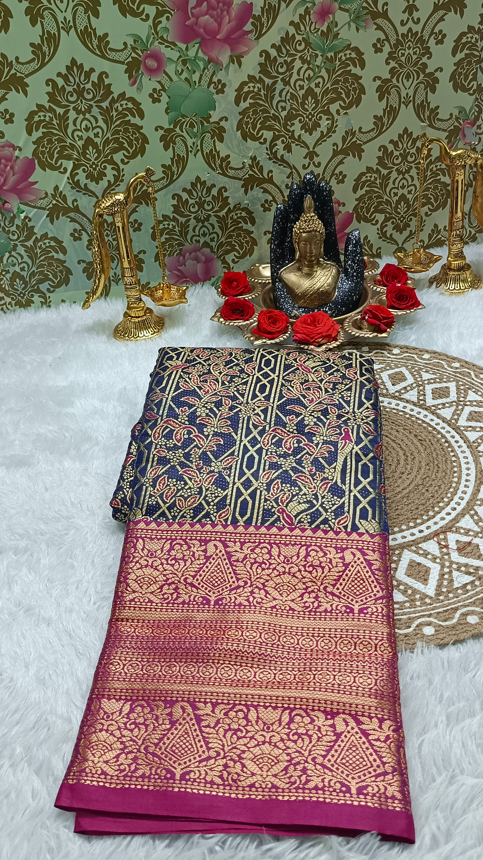 Navy blue with pink Raj Nandhini Vegan Kanchi Silk Saree JA25284