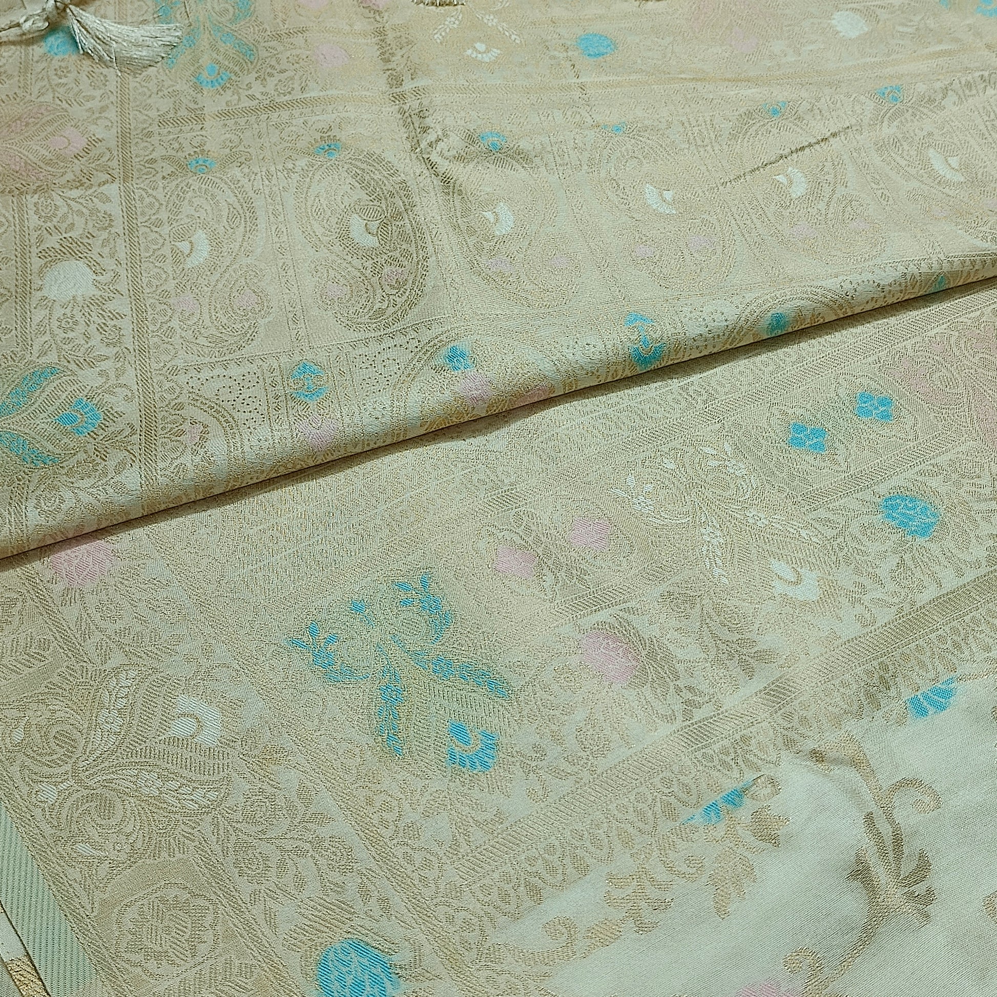 Weave: Traditional Kaddi weave structure, interwoven with delicate Jaal and vibrant Meenakari accents.