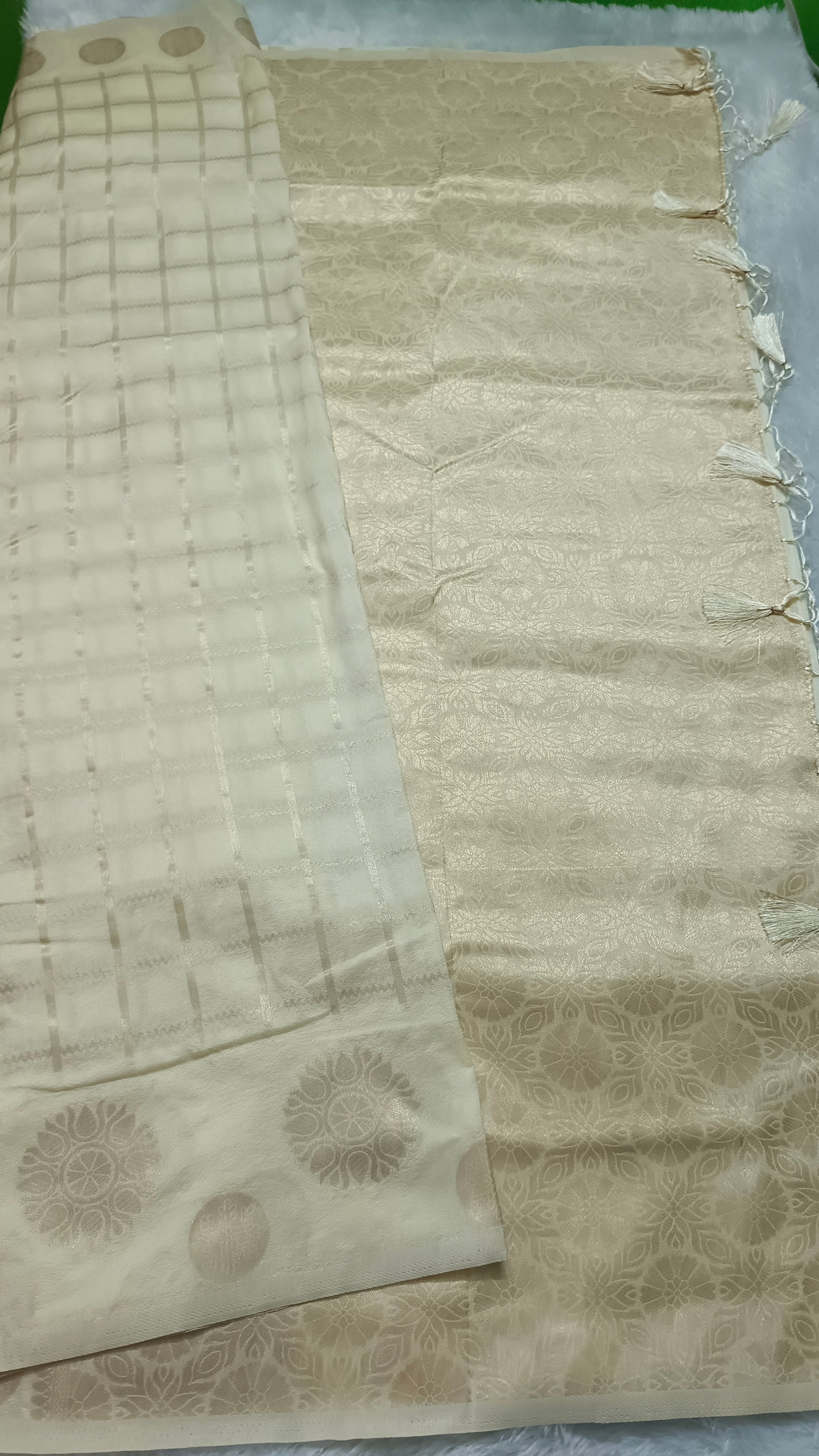 Off white Sudar Chakkram vegan kaddi georgette saree MA25094