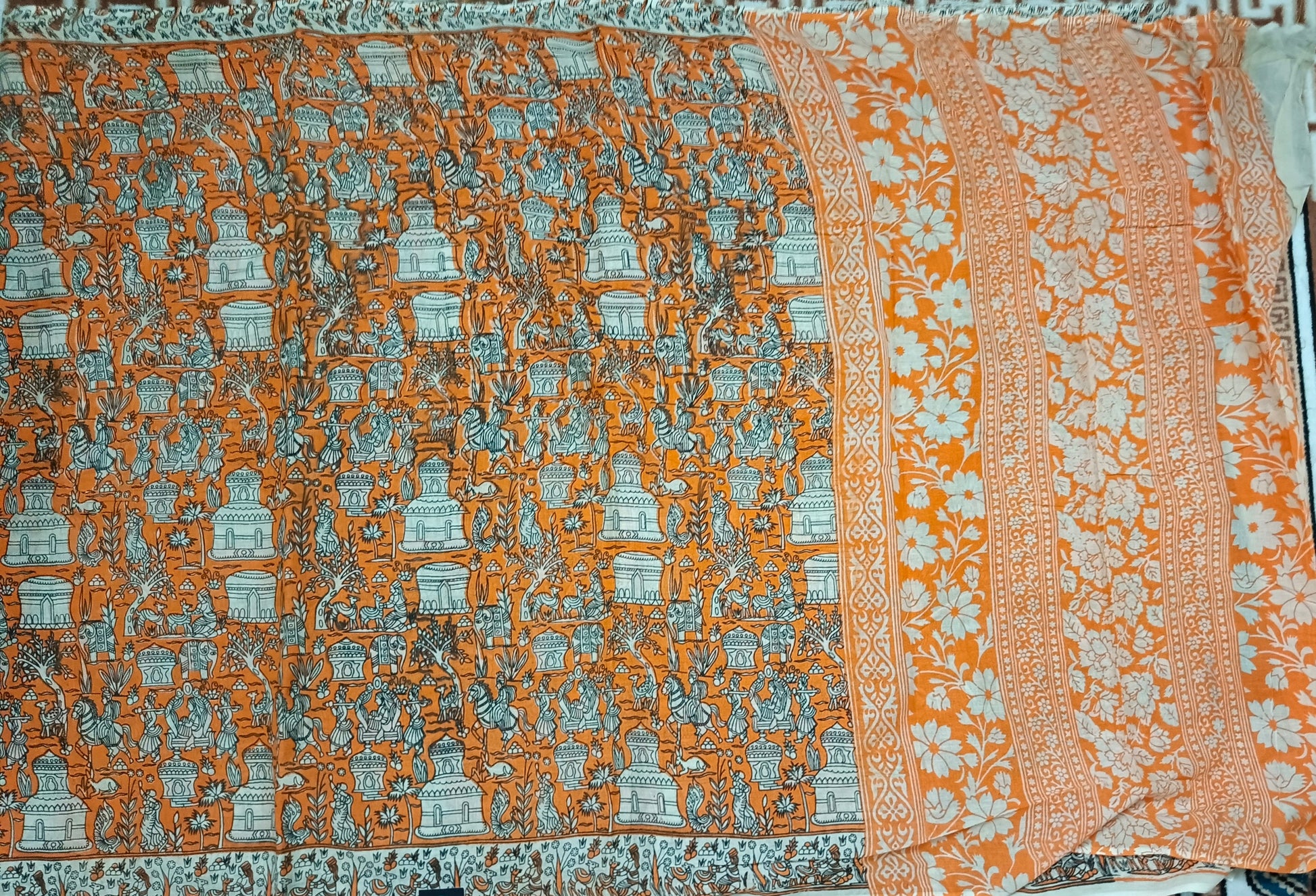 Orange Ganga Mull Cotton kalamkari saree SA25853