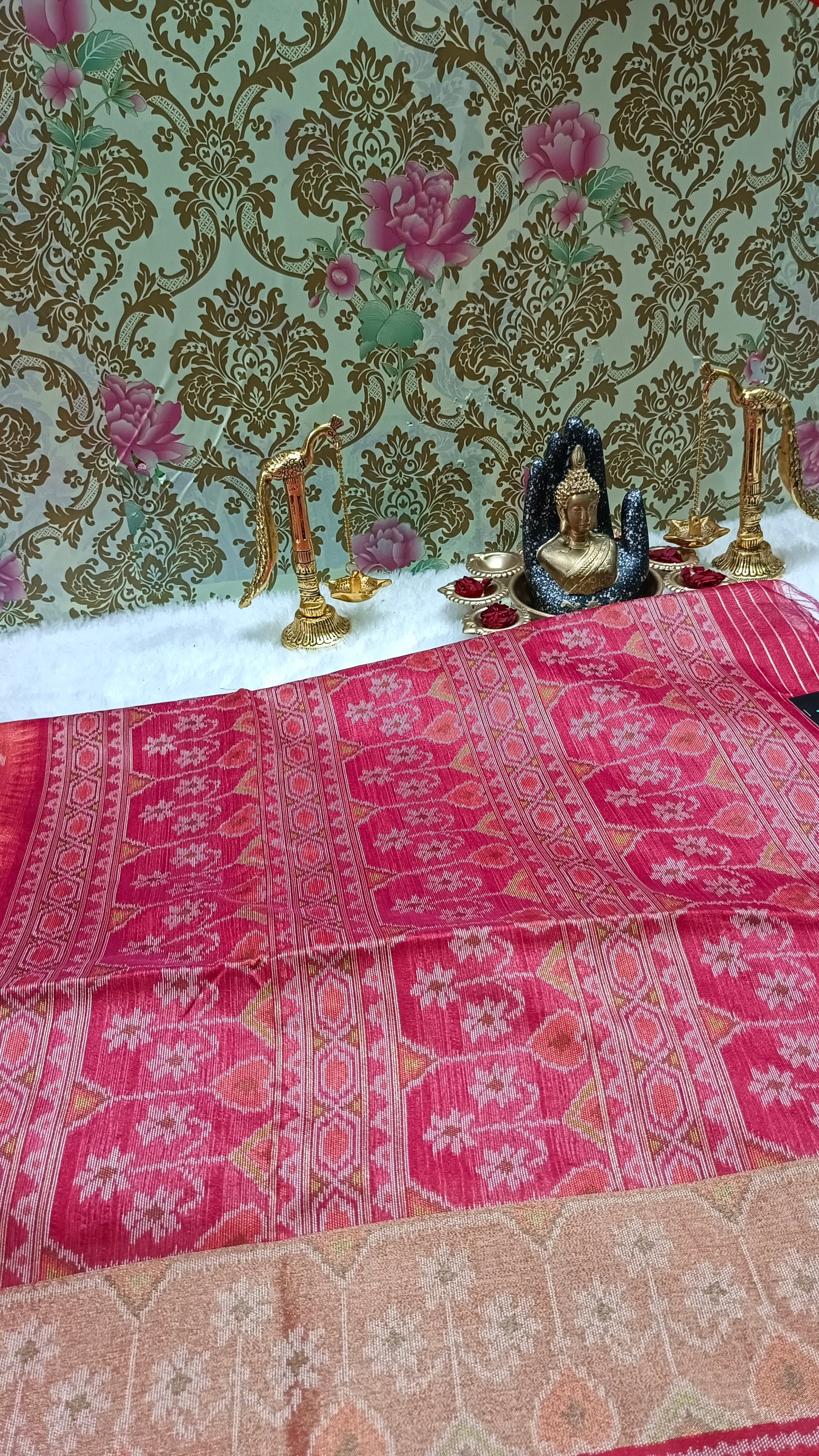 Discover the perfect harmony of ethics and elegance with our captivating Zigzag Hand Weave Ikkat Saree, crafted from a luxurious and breathable Vegan Silk Cotton blend. This piece is distinguished by its intricate, authentic handloom zigzag motif, creating a graphic yet timeless visual appeal that is lightweight enough for all-day comfort, yet rich enough for any occasion.