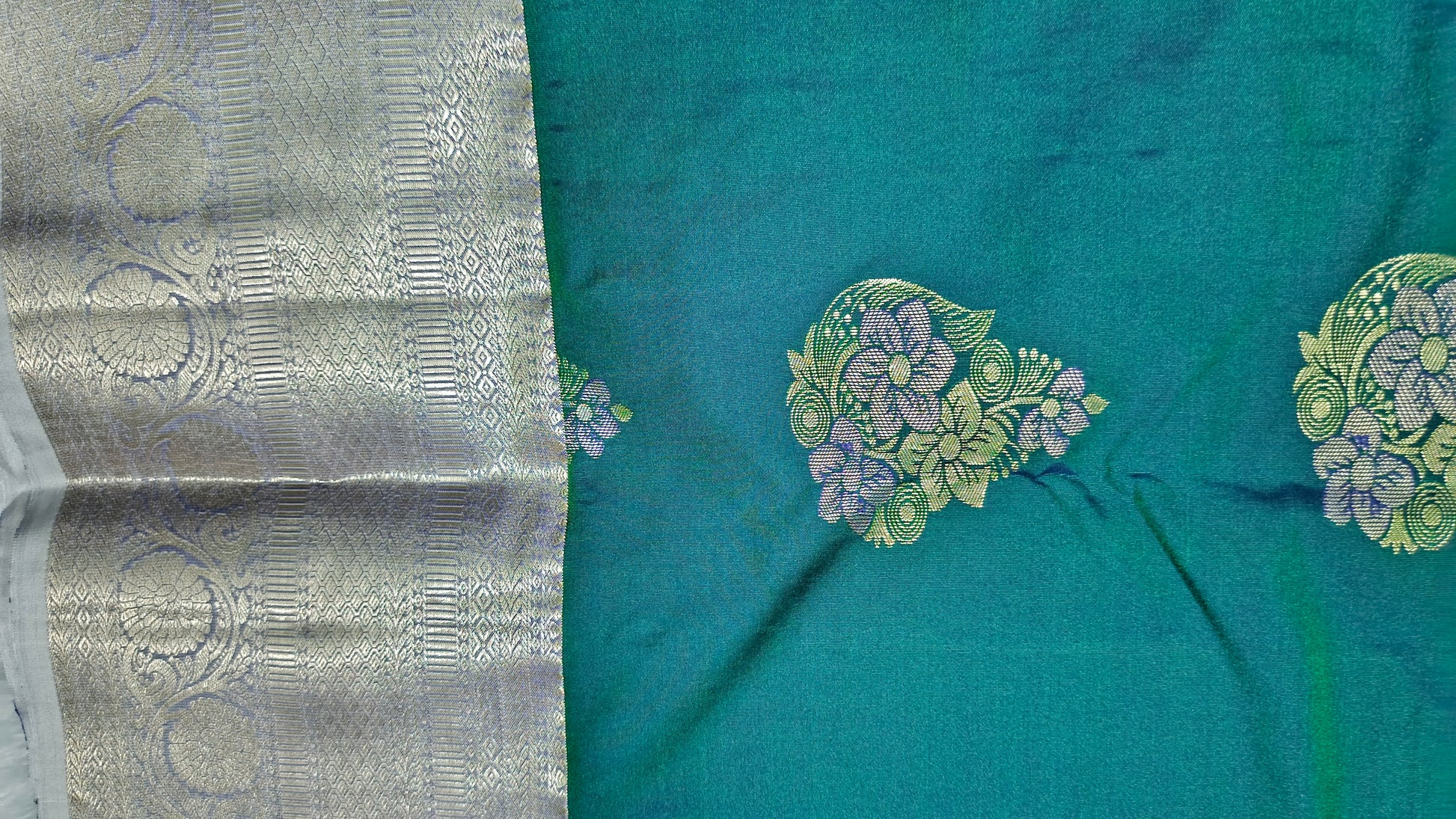 | Motifs | Traditional Kanchi Motifs (Intricate cultural patterns—such as florals, peacocks, or temple designs—woven along the saree body) |