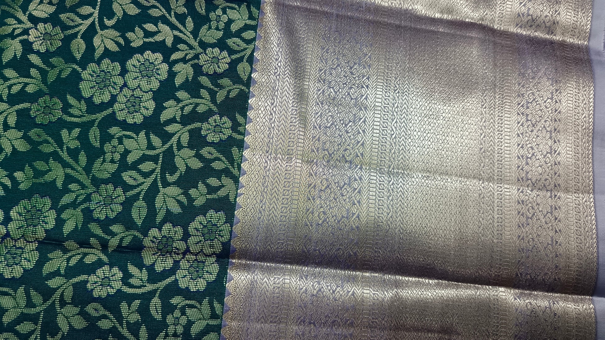 Peacock green Parijatham Vegan premium kanchi brocade silk saree LA25923