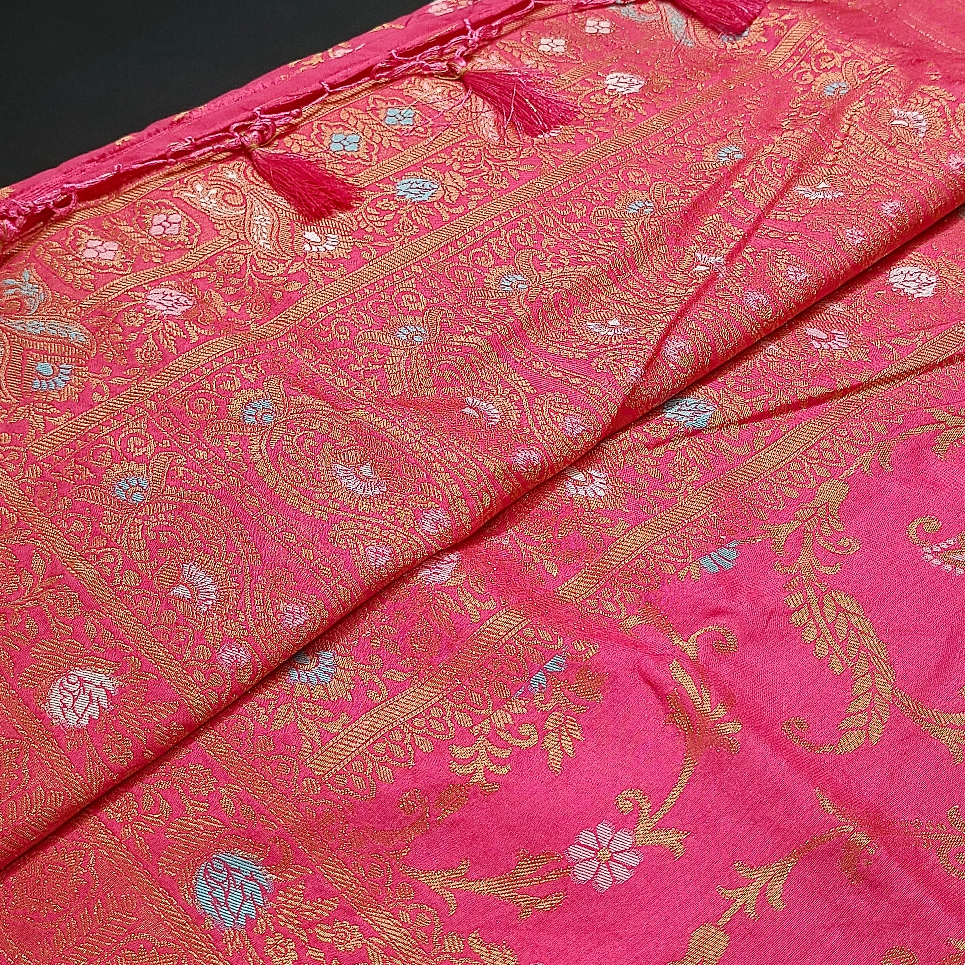 Weave: Traditional Kaddi weave structure, interwoven with delicate Jaal and vibrant Meenakari accents.