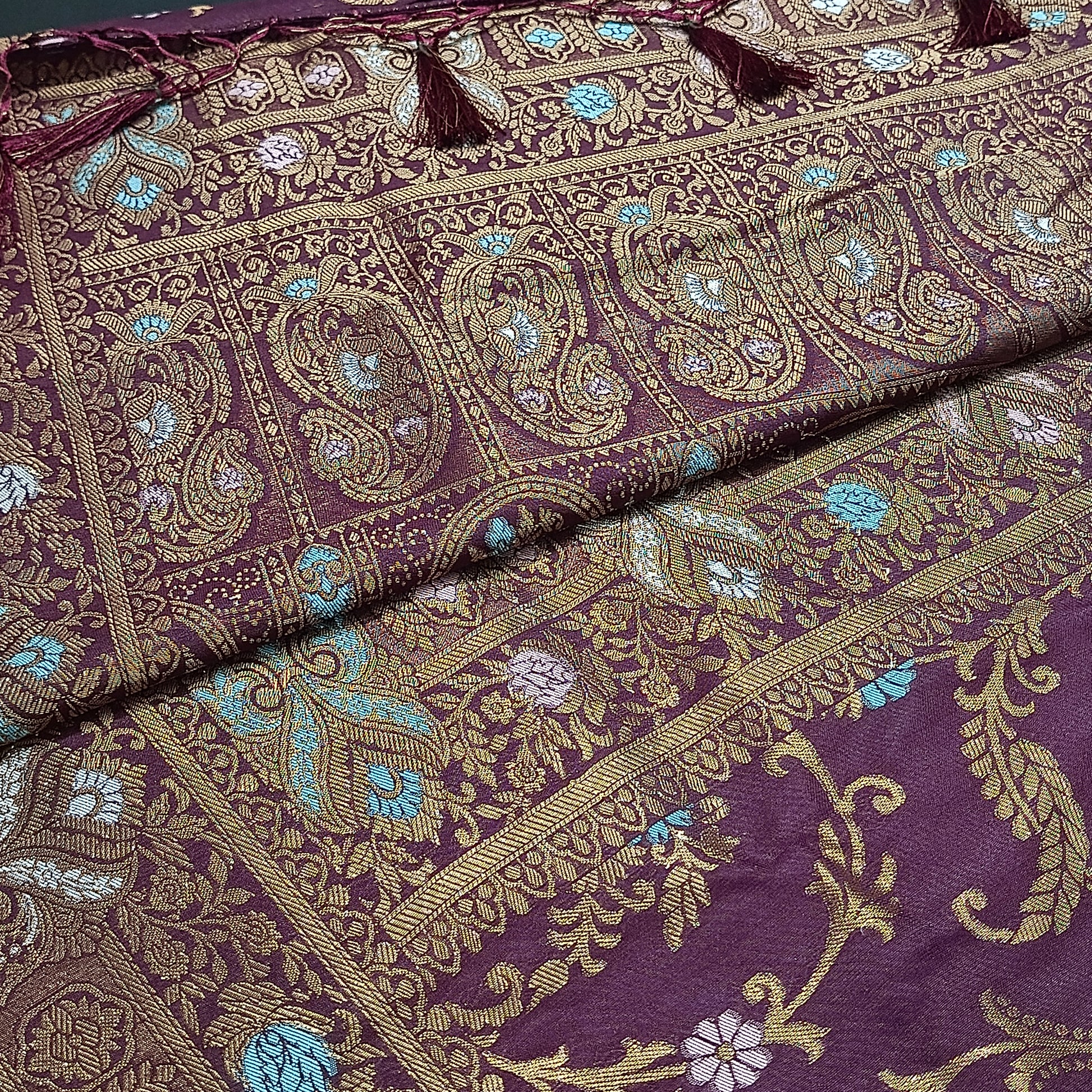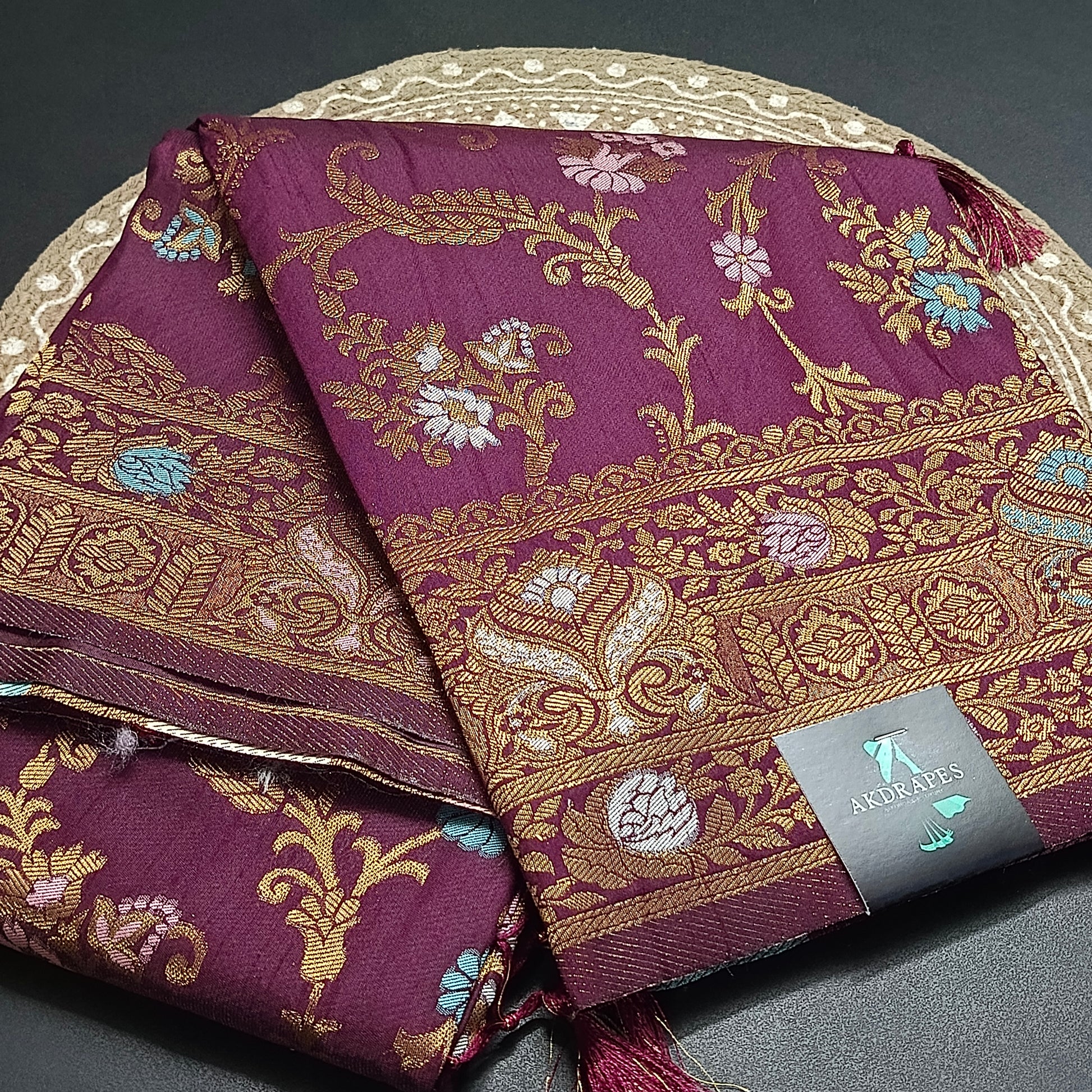 Weave: Traditional Kaddi weave structure, interwoven with delicate Jaal and vibrant Meenakari accents.