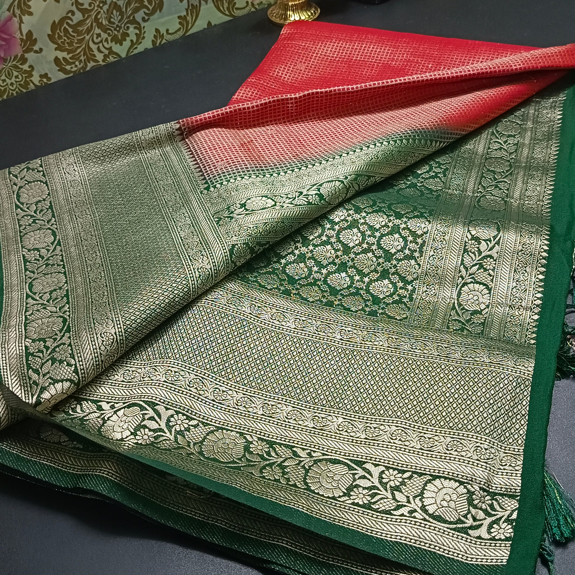 Red Zari tara vegan banarasi kaddi georgette saree MA25260