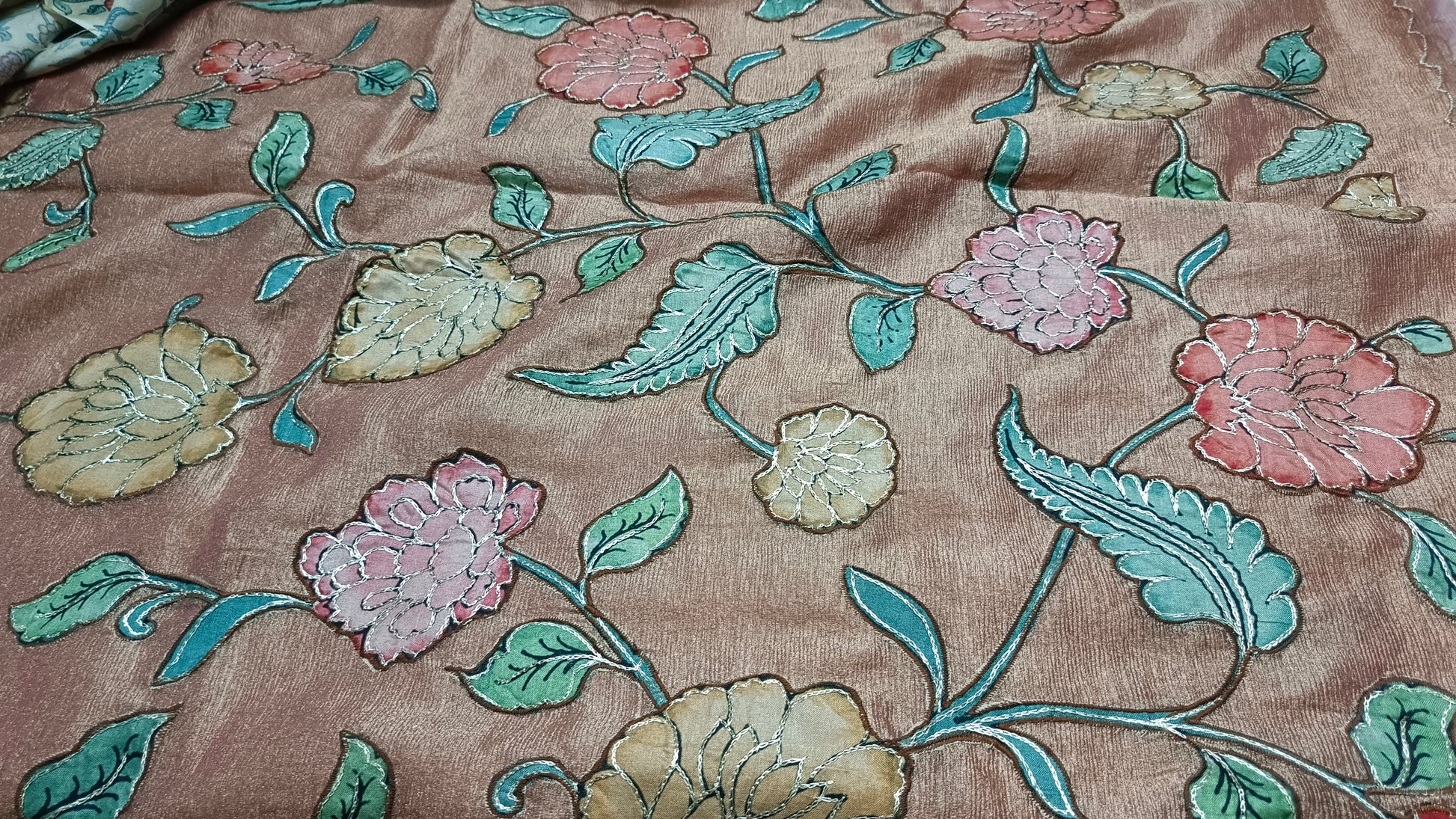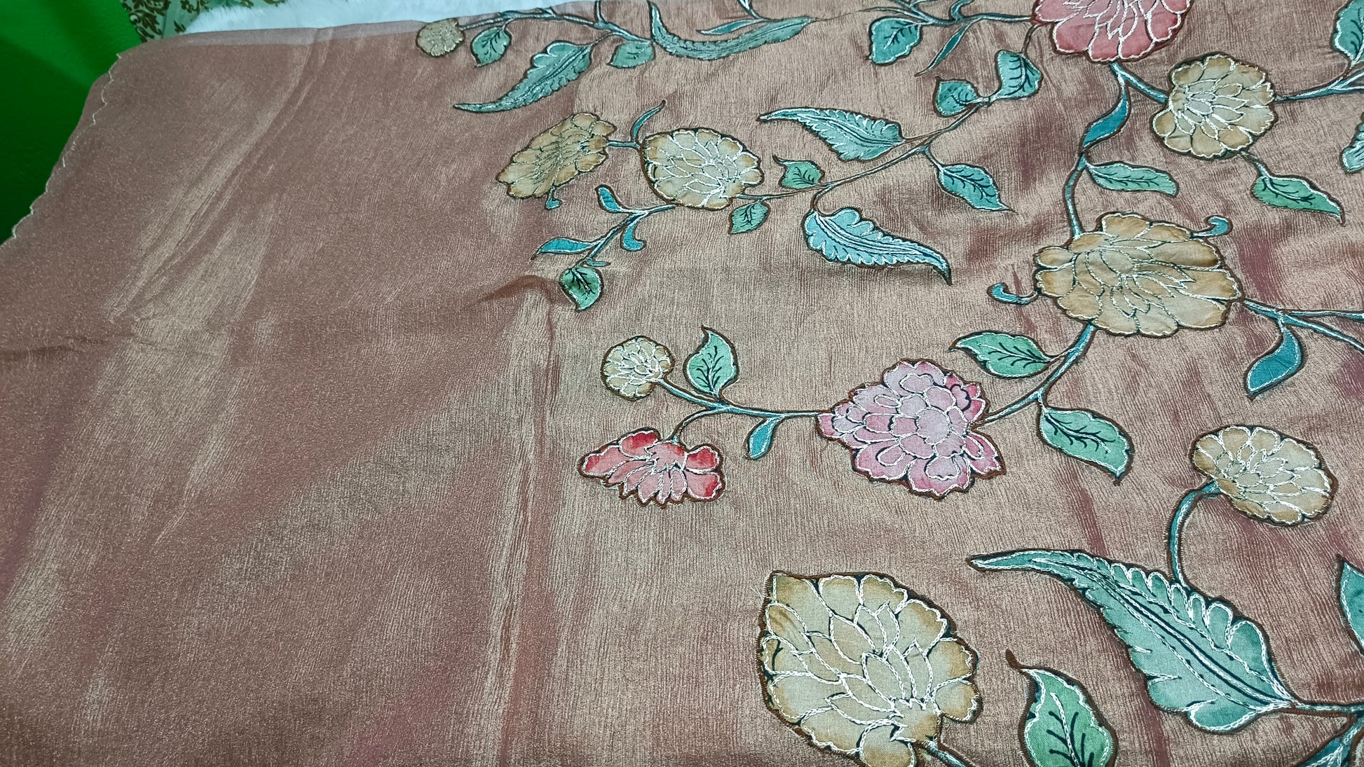 Rose Gold Floral symphony applique vegan tissue saree SA25715