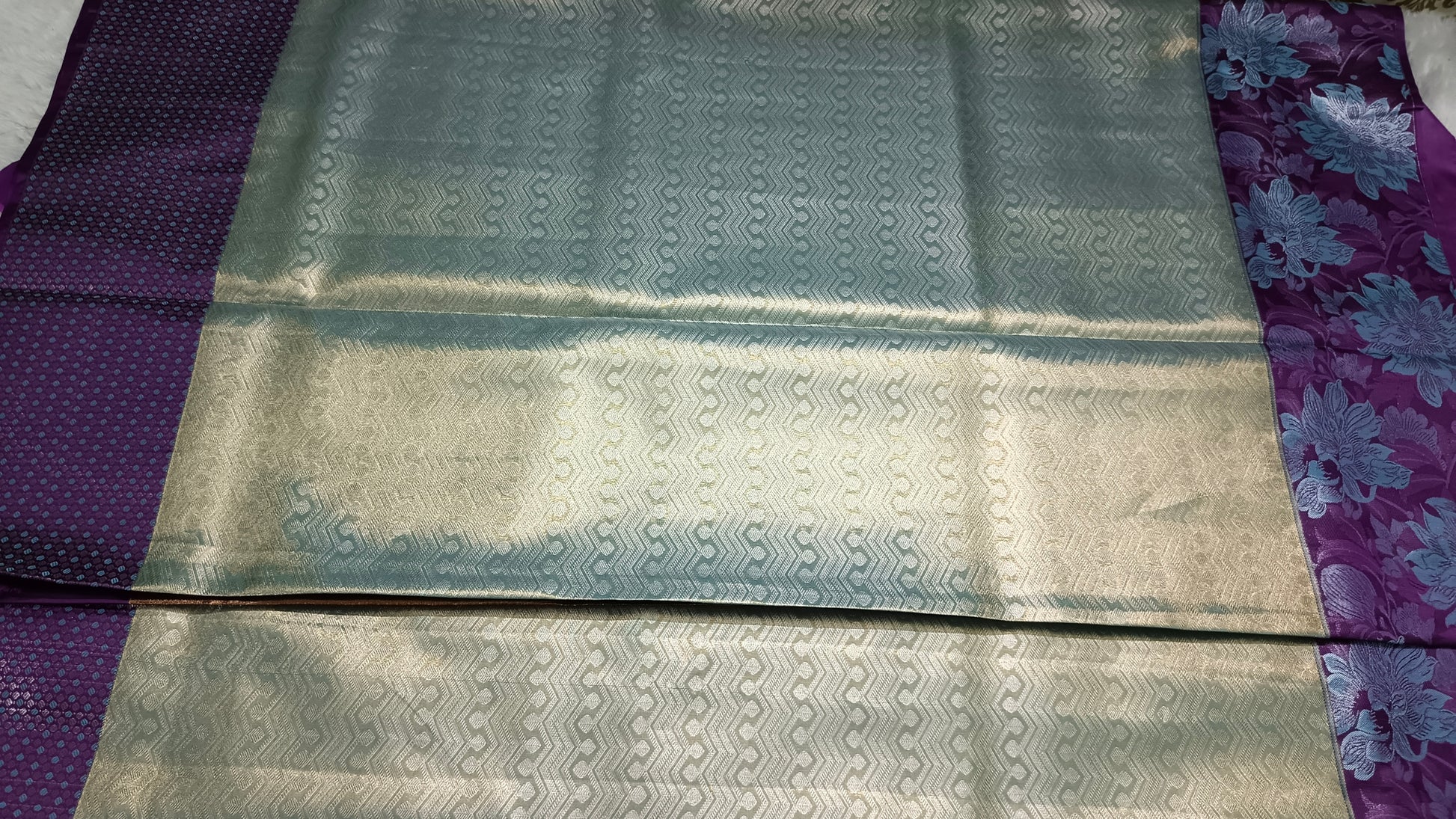 Ice blue with violet Neelambari vegan tissue bridal kanchi silk saree LA25942