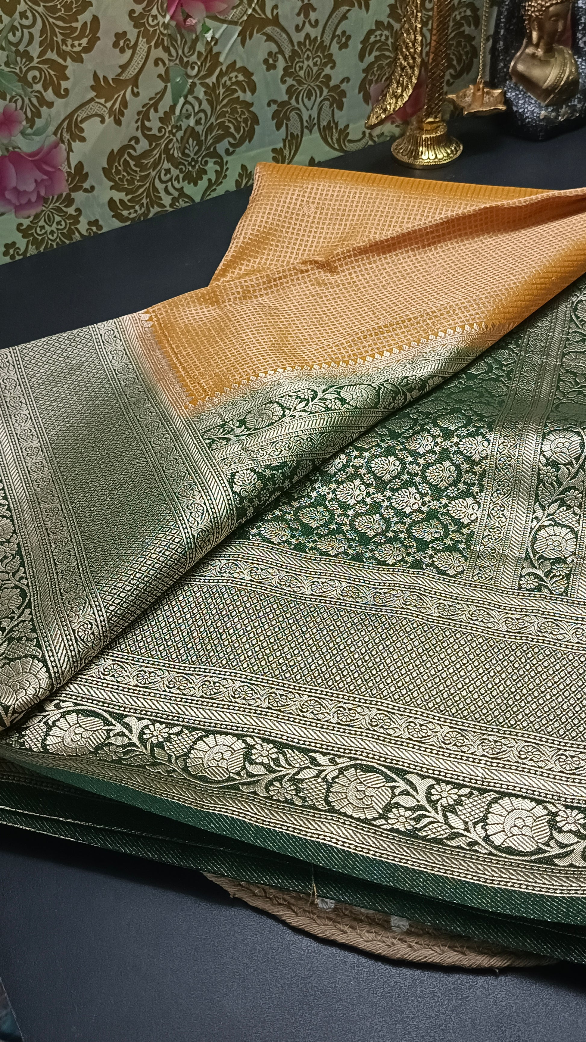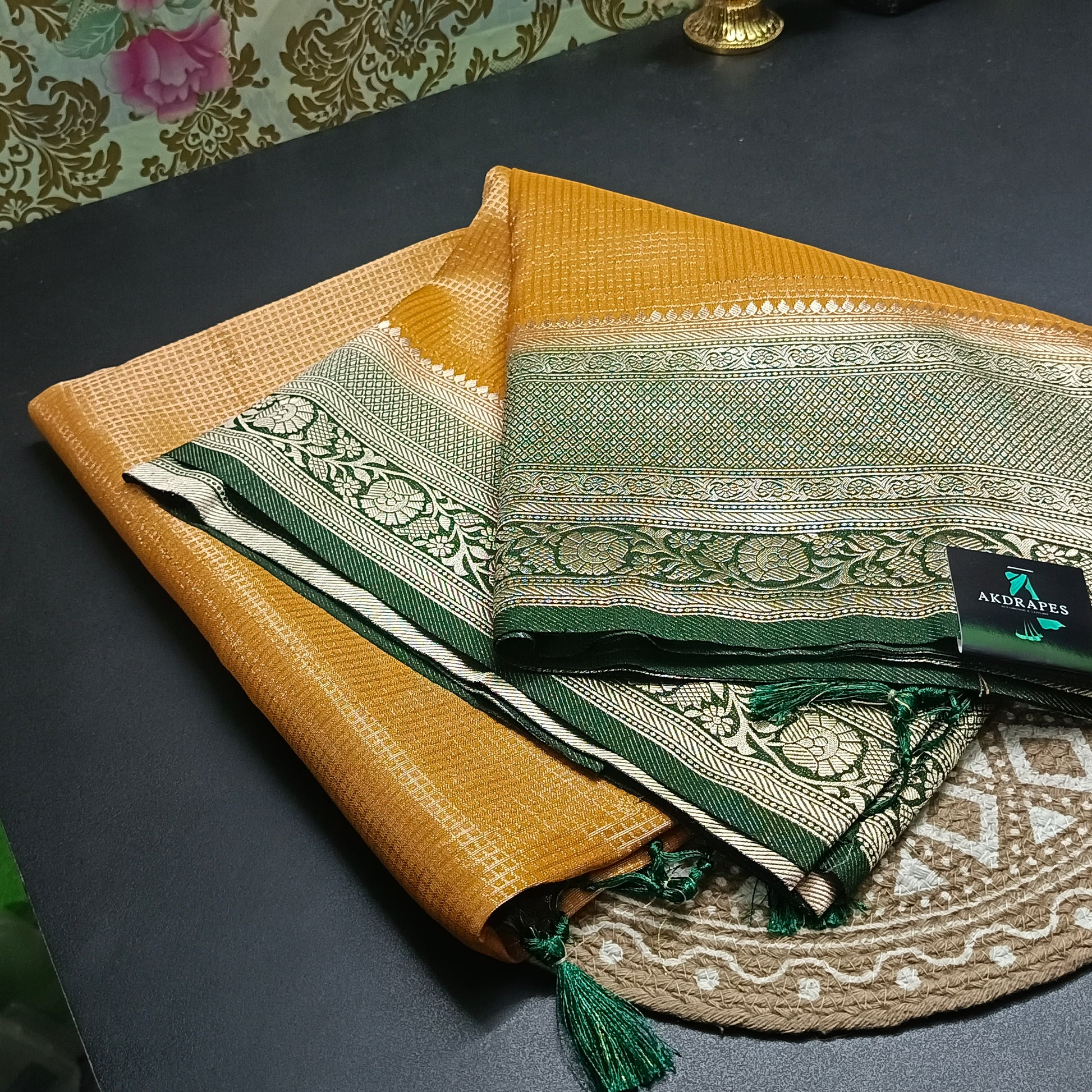 Yellow Zari tara vegan banarasi kaddi georgette saree MA25261